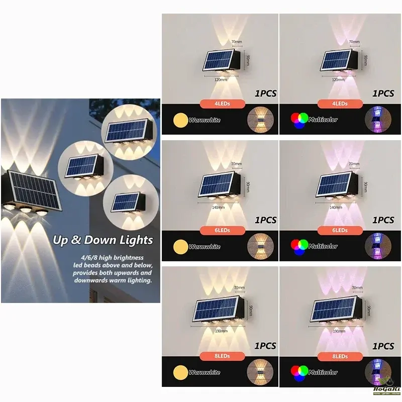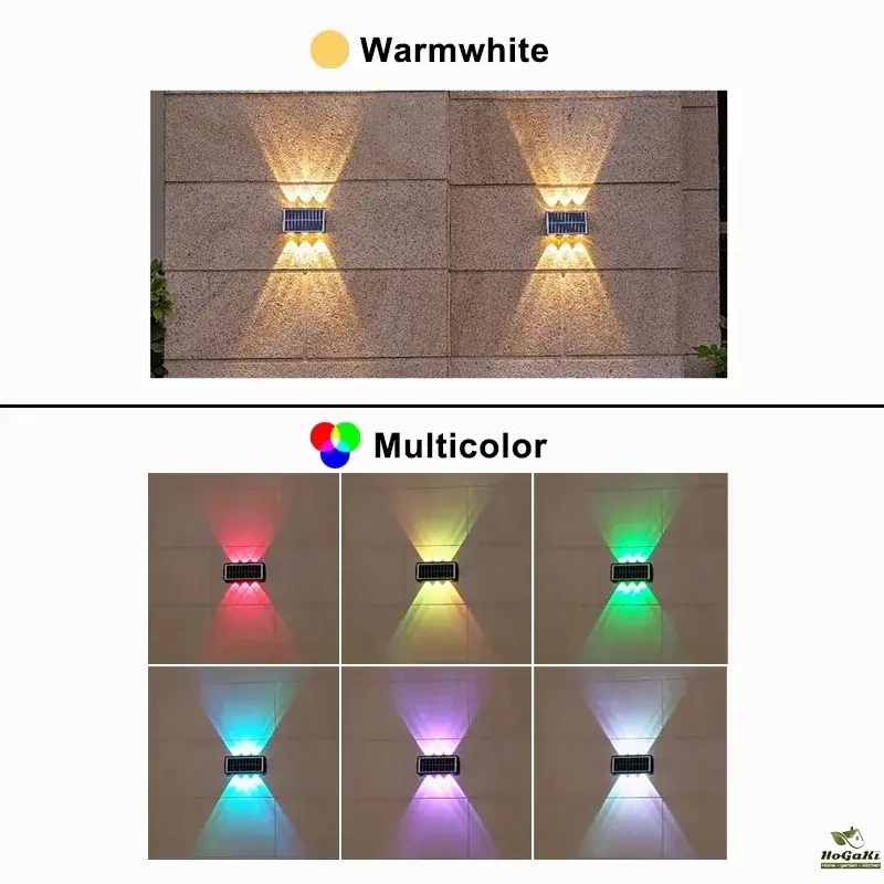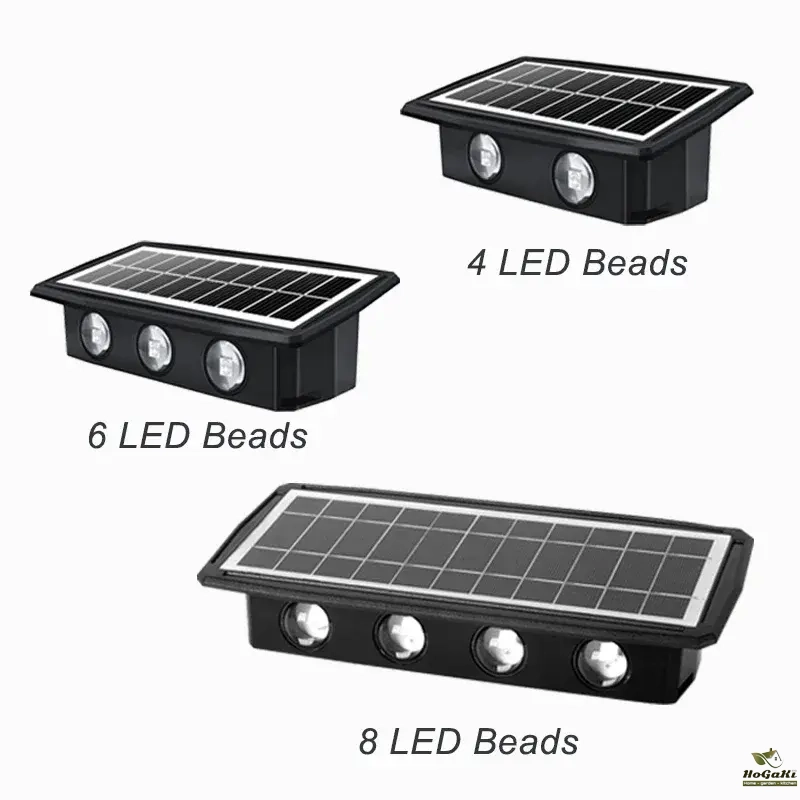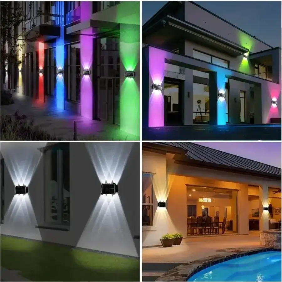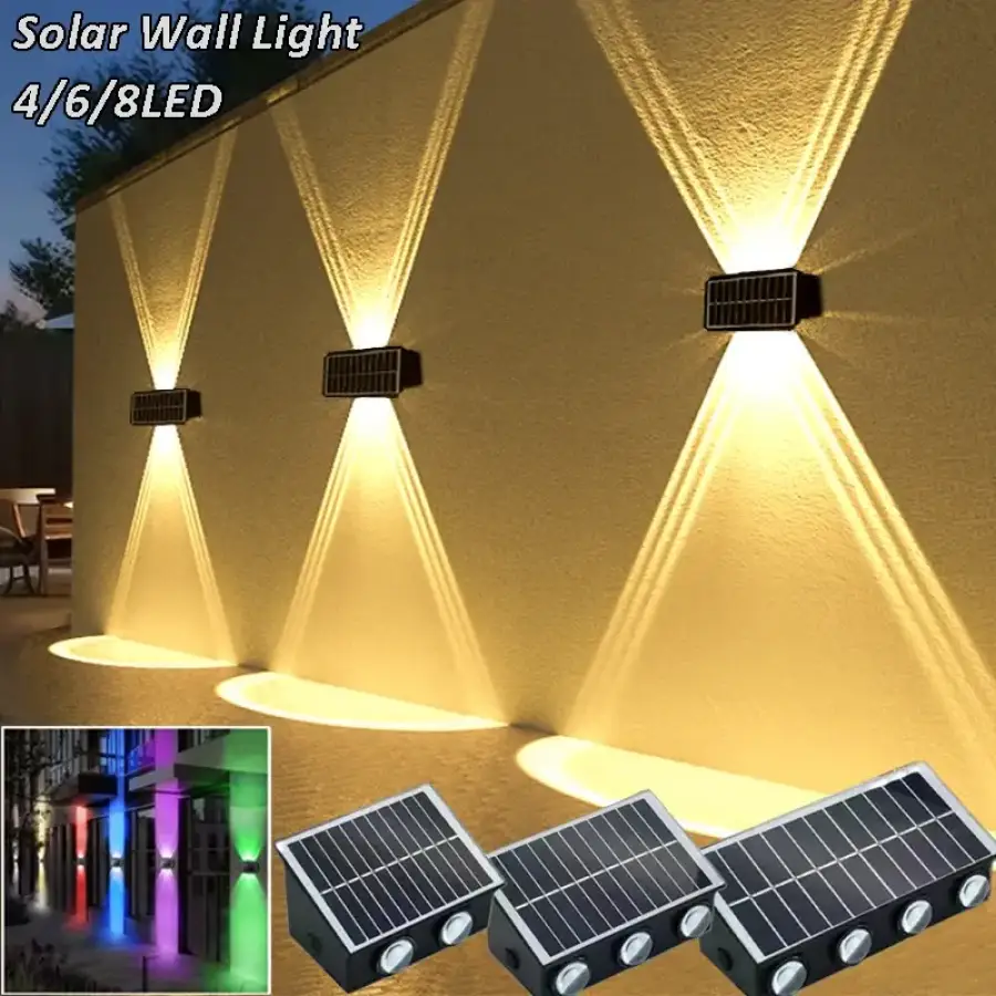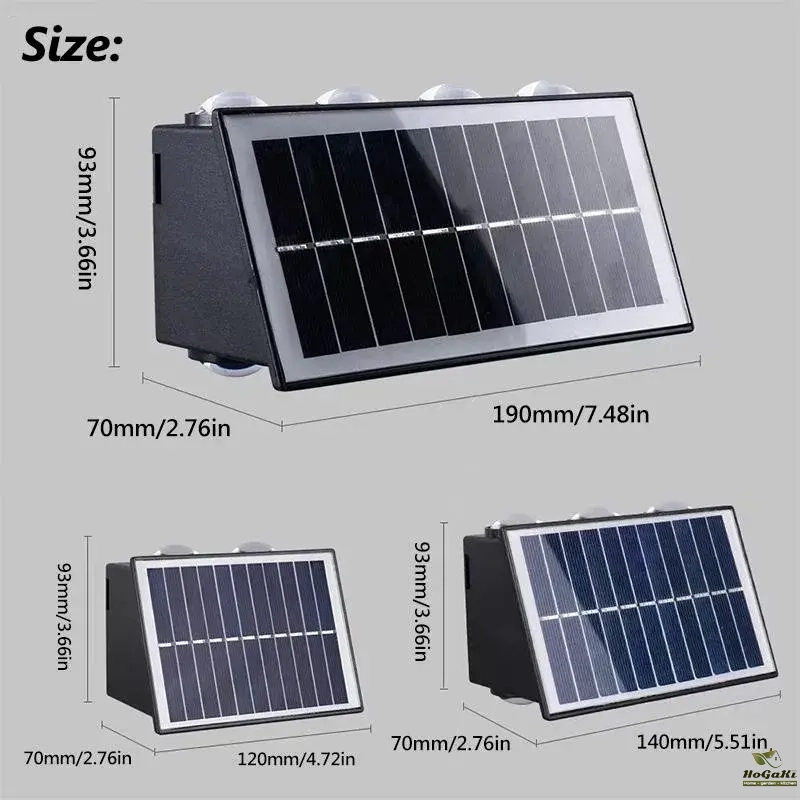 The solar wall light has 4/6/8 higher brightness led beads above and below, provides both upwards and downwards warm lighting. Is evenly distributed up and down, casting a beautiful arc, so that the monotonous wall is effectively decorated. The lights fixture magnified with reflector lenses to concentrate the light, increase the lamp's brightness.