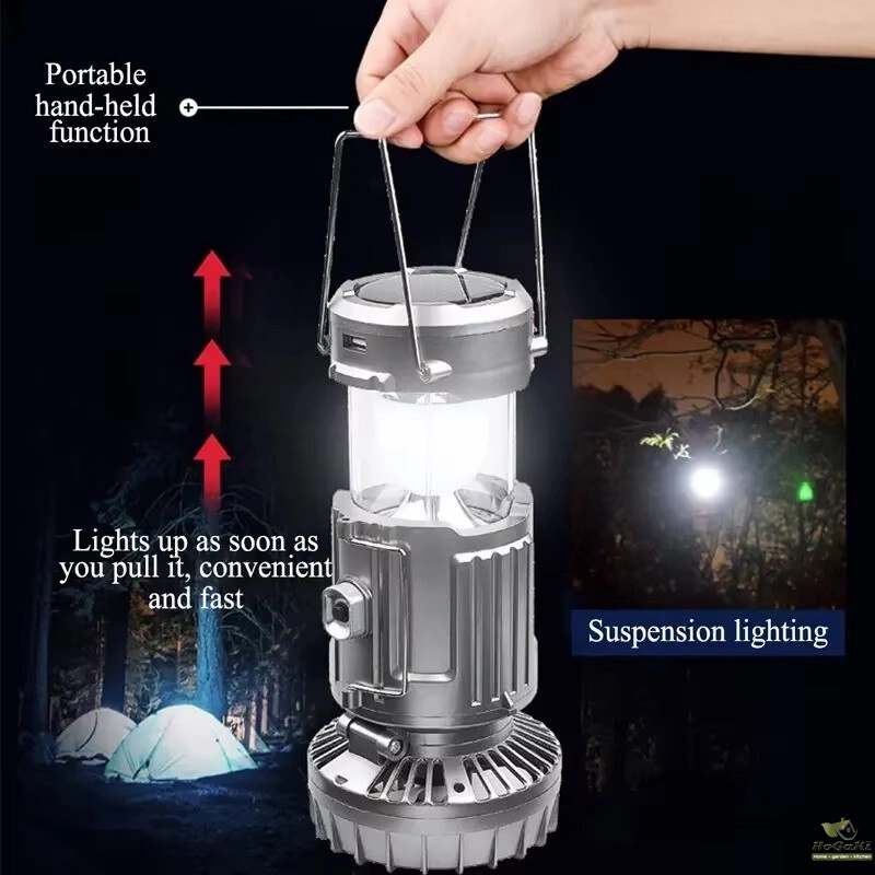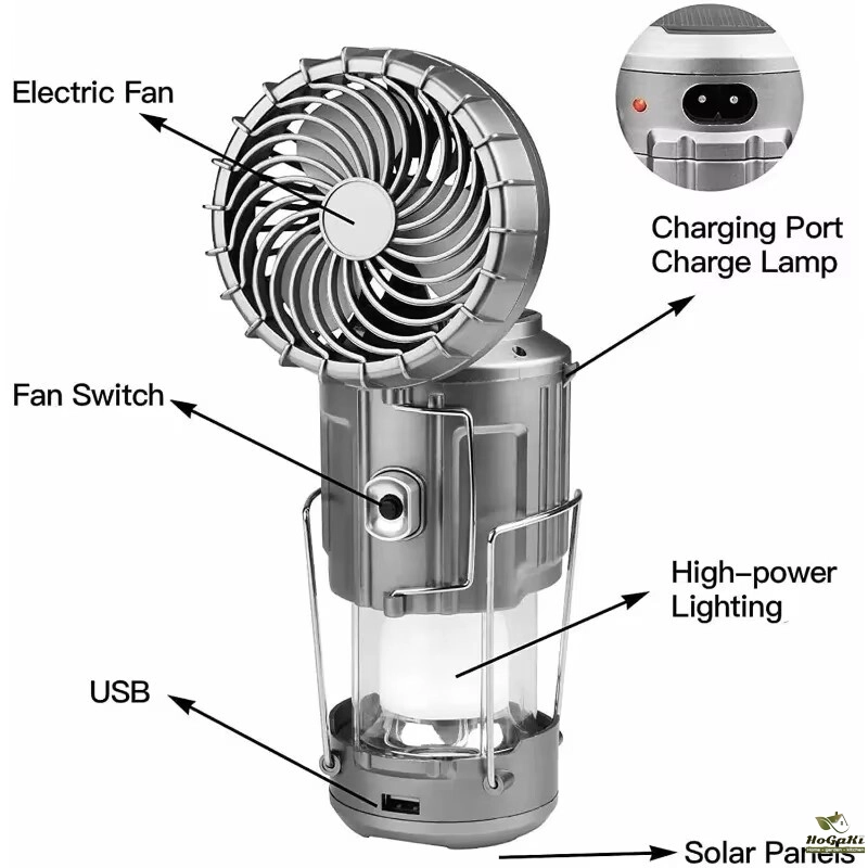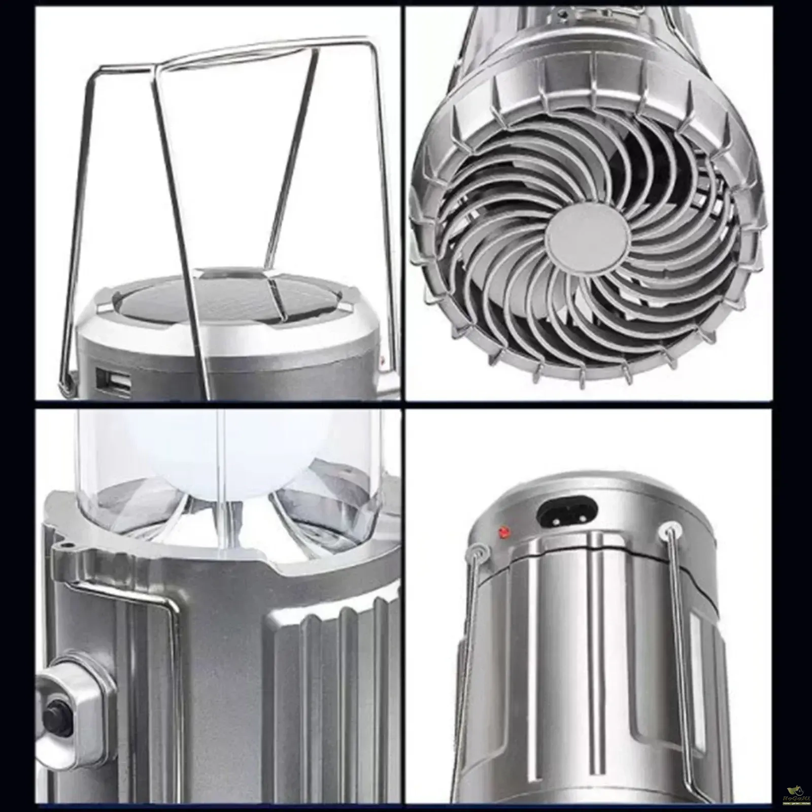 4.Essential for Home and Outdoor: This solar camping lantern cooling fan is an essential item that every home should have as backup lighting. It's perfect for outdoor activities such as camping, fishing, and hiking, or used as an emergency light during power outages, hurricanes, earthquakes, or other emergency situations.
