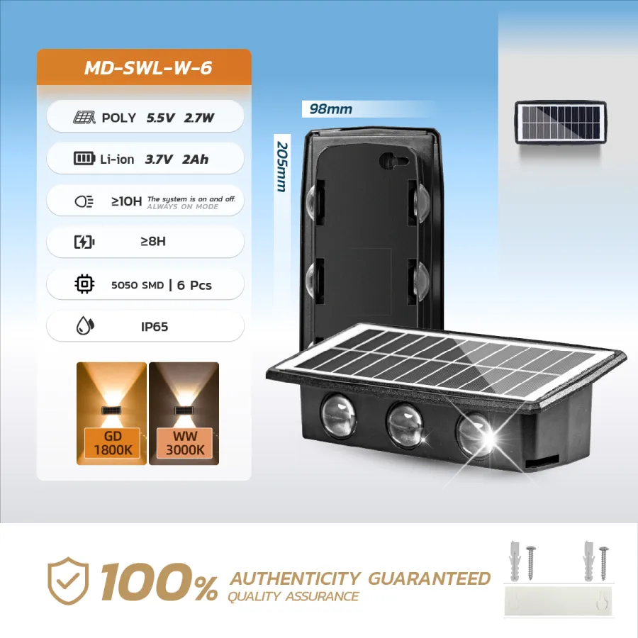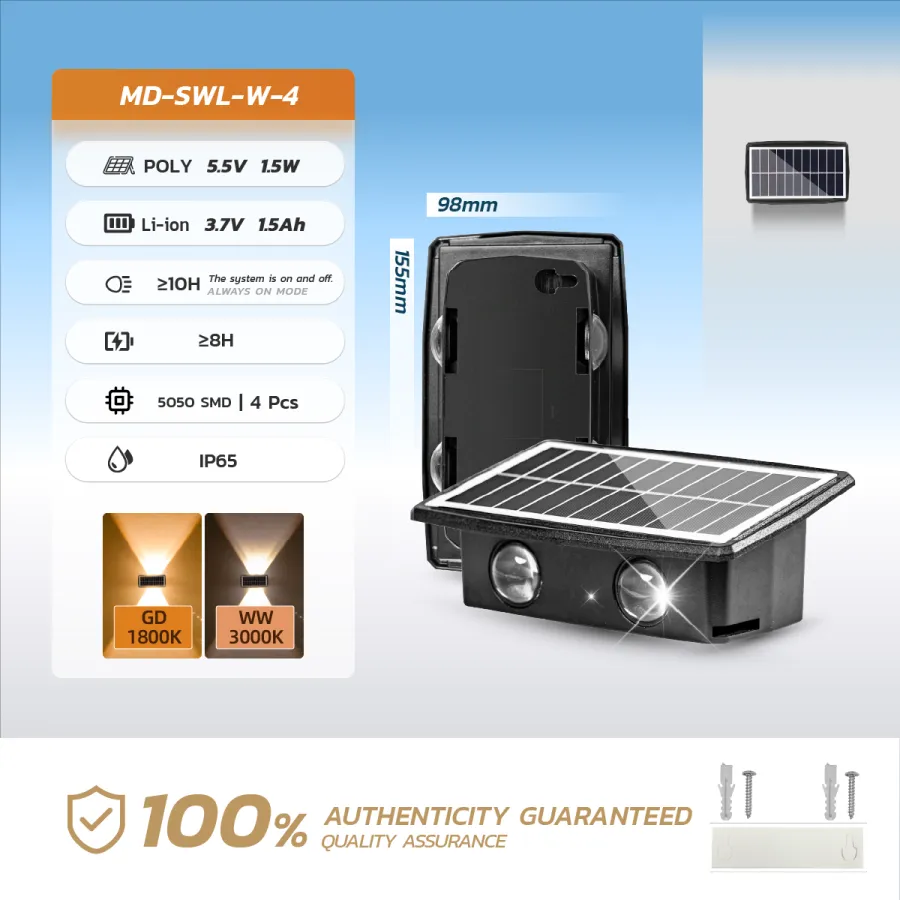 Solar LED Outdoor Lighting Plastic Outdoor Wall Lights Waterproof Sensory Switch Easy Installation Adjustable for Home Garden