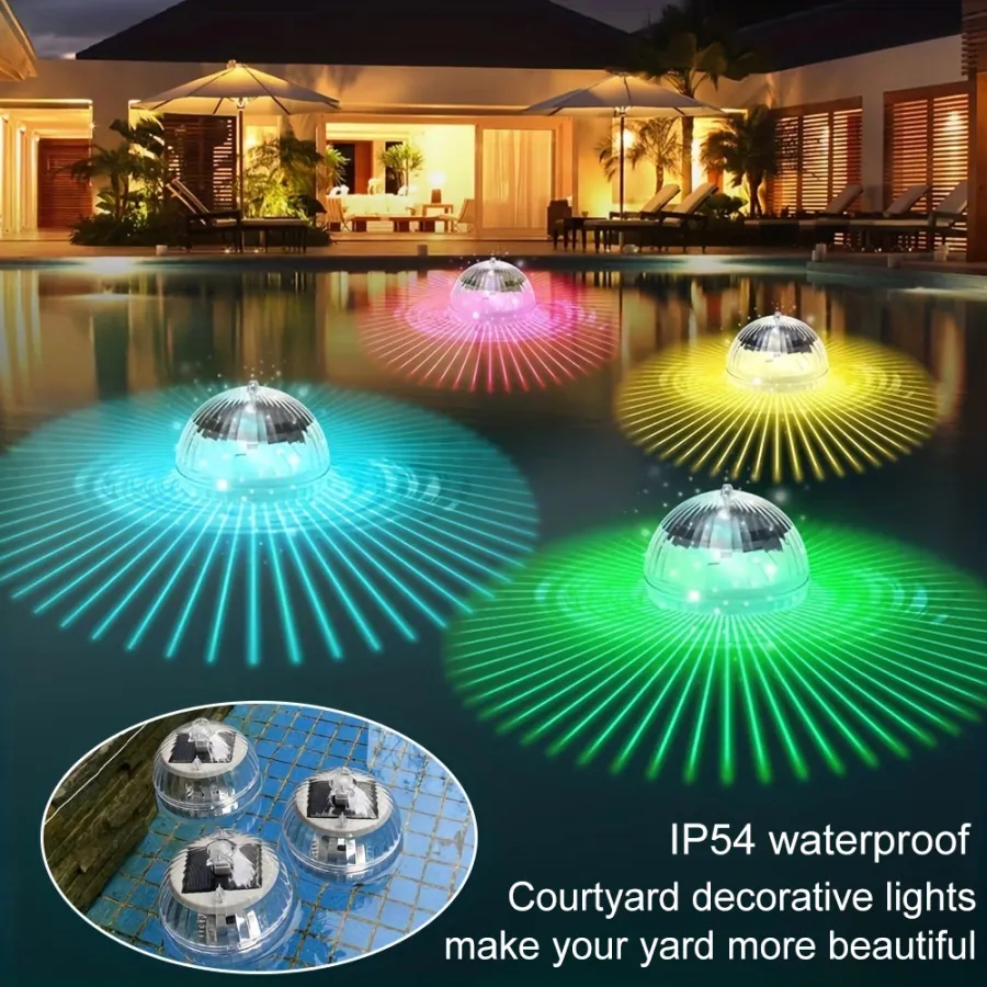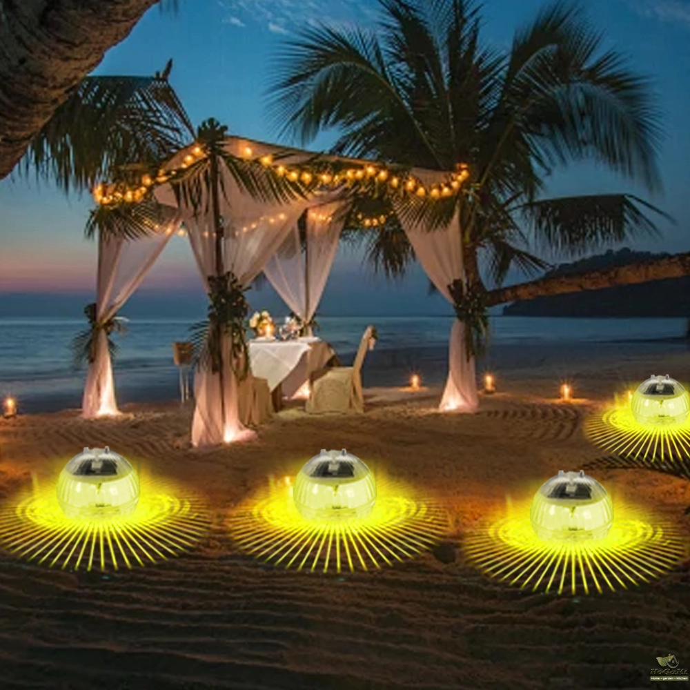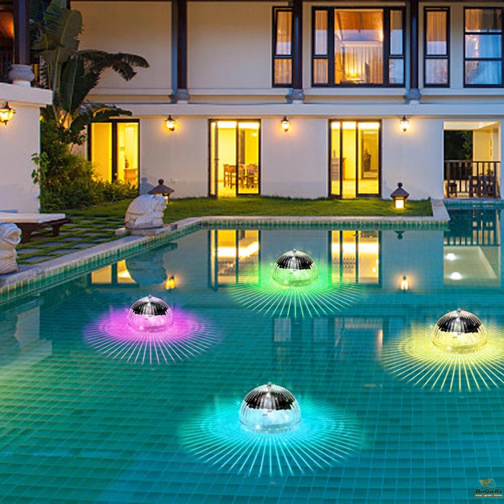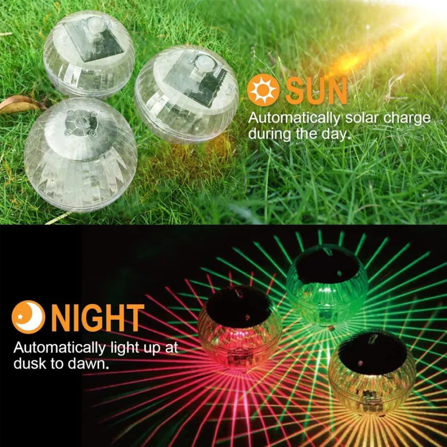 There is direct sunlight place, can be used in swimming pools, bathtubs, ponds, fountains, shower toys, yard lawn decoration, hanging in the tree and other places