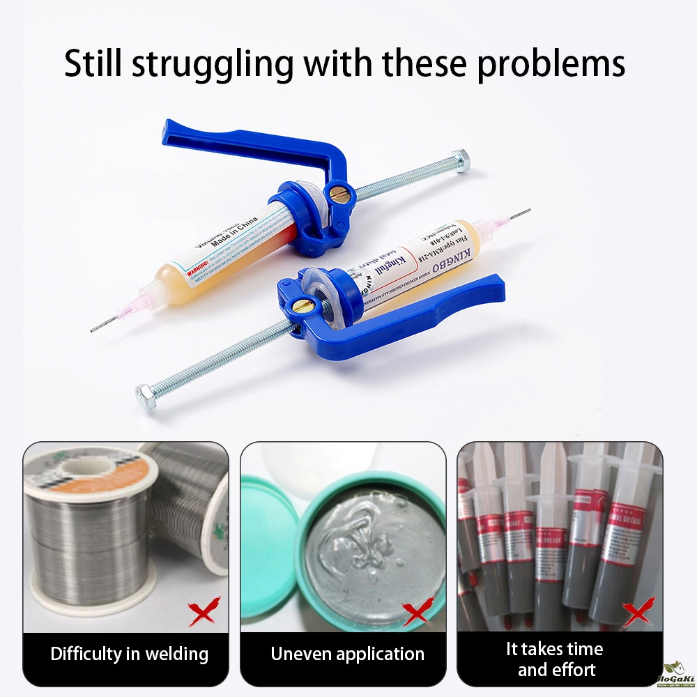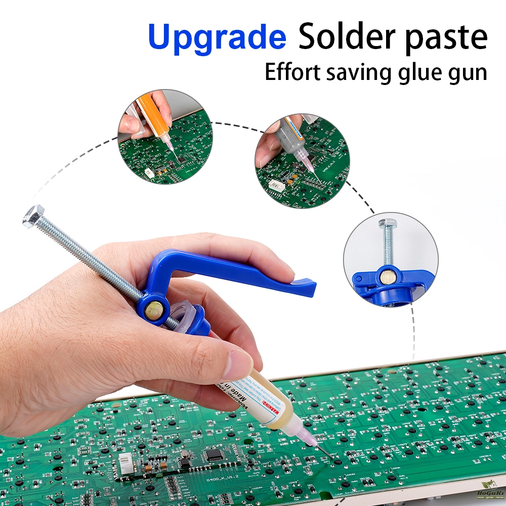 Syringes are filled with solder paste, tin paste, flux, solder oil and other