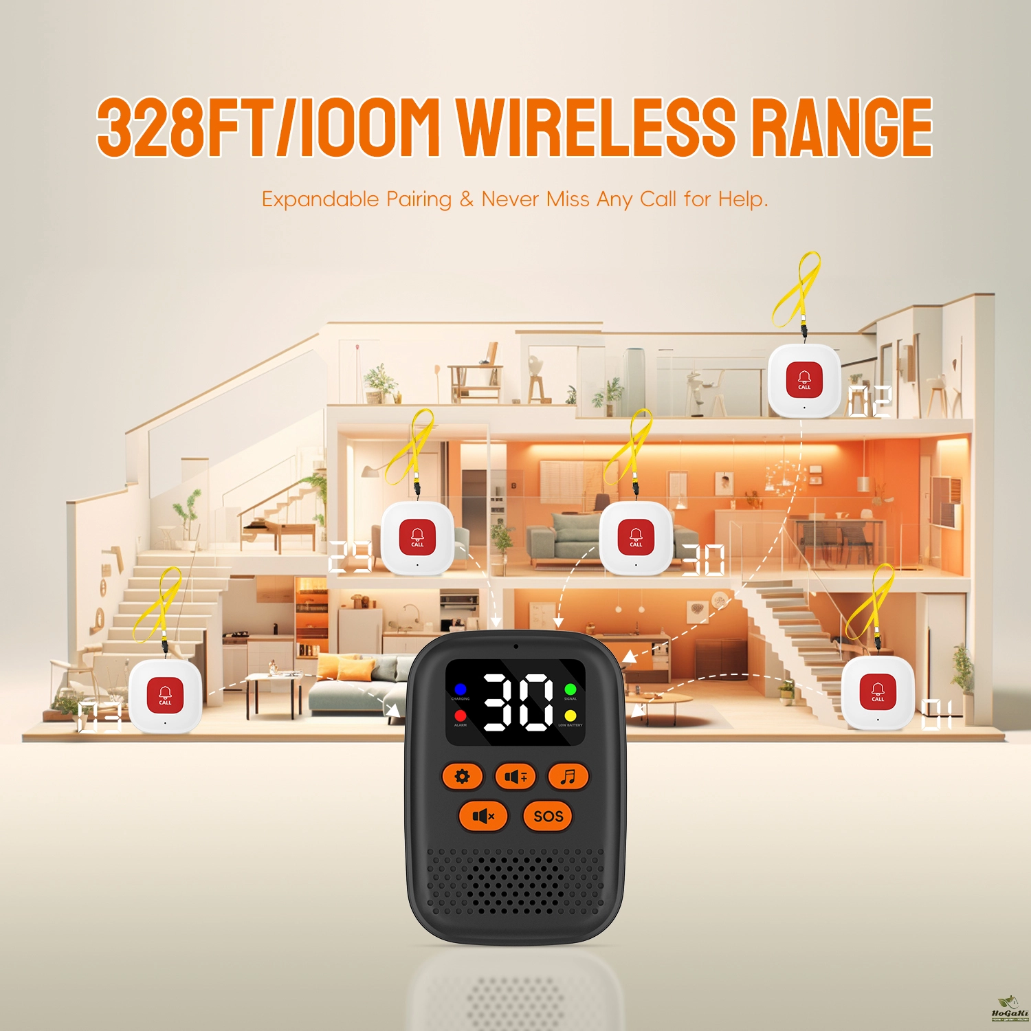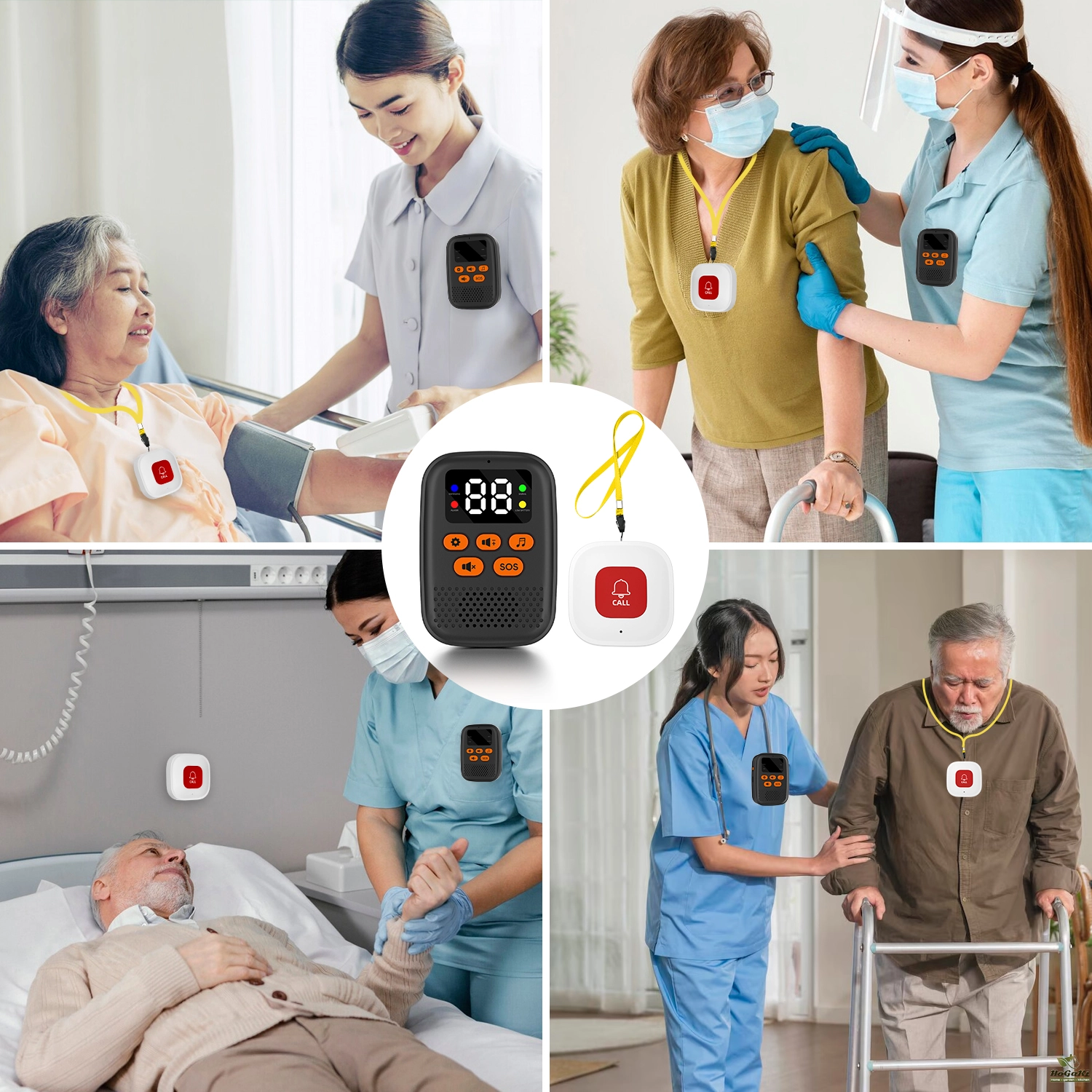【Wireless Caregiver Pager】-2 Portable Pager 3 Waterproof Call Button. Allow caregivers and residents to be free while ensuring that help is still available at the touch of a button, ideal for elderly, seniors, patients, disabled