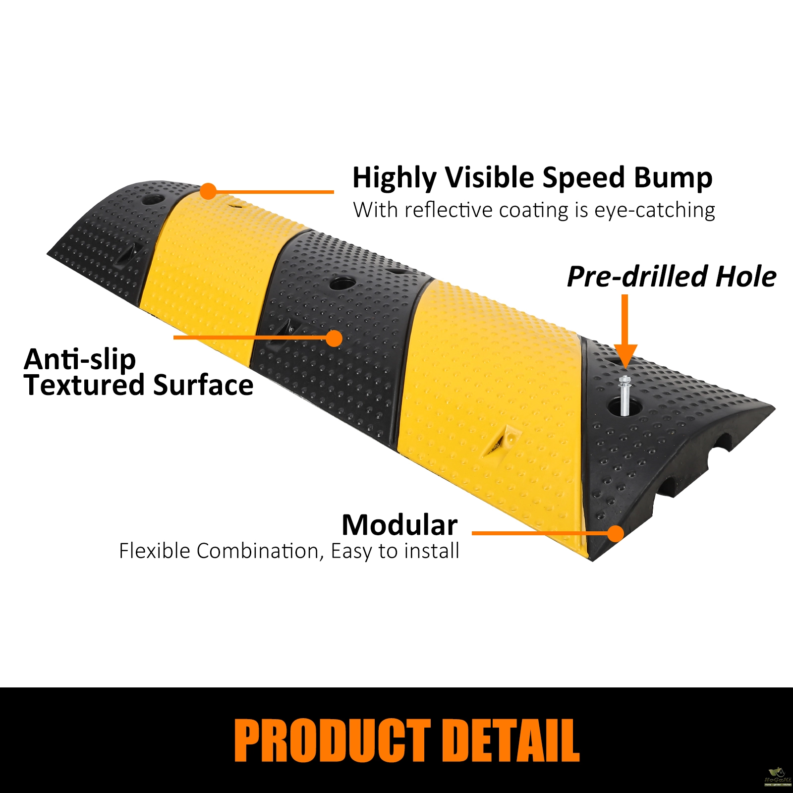 HIGH VISIBILITY & ANTI-SLIP - Black + Yellow color with reflective coating draws attention to speed bumps at night and in low light conditions, notifying drivers and passersby to slow down. In addition, the anti-slip texture enhances friction