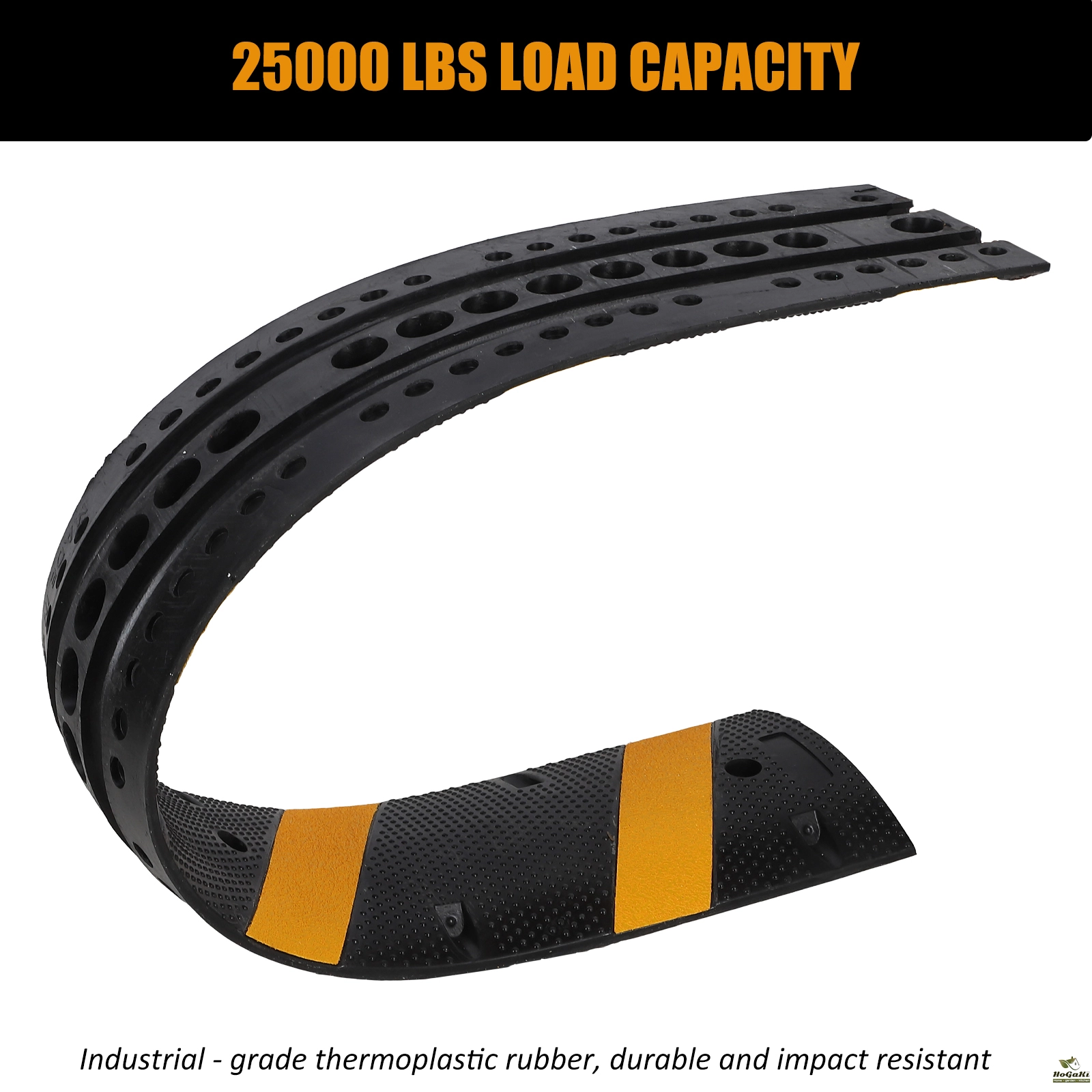 25000 LBS LOAD RUBBER - 25,000 lbs load Capacity Industrial-Grade Rubber Speed bumps are durable and resistant to pressure, UV, water, oil, and temperature extremes. Also, the Honeycomb hole design reduces shock and noise and increases pressure resistance for a longer service life