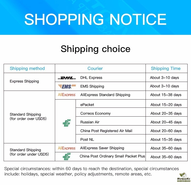 If you can't find the estimated delivery time on the product detail page, you can look at the following table for reference.