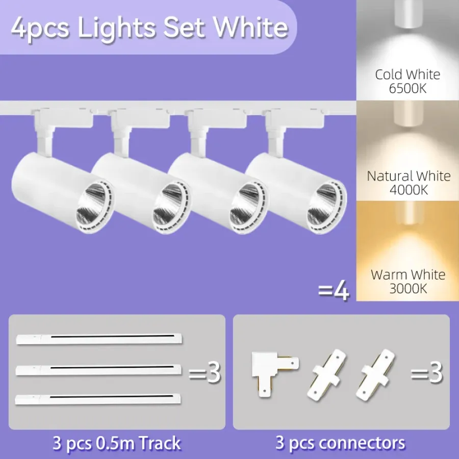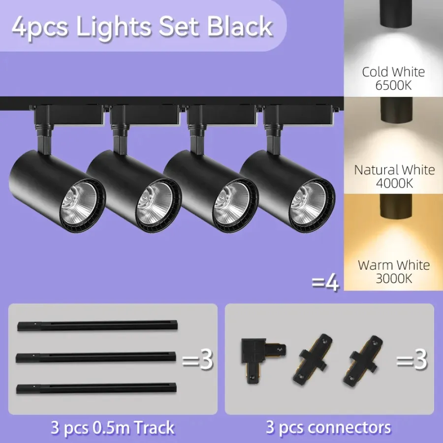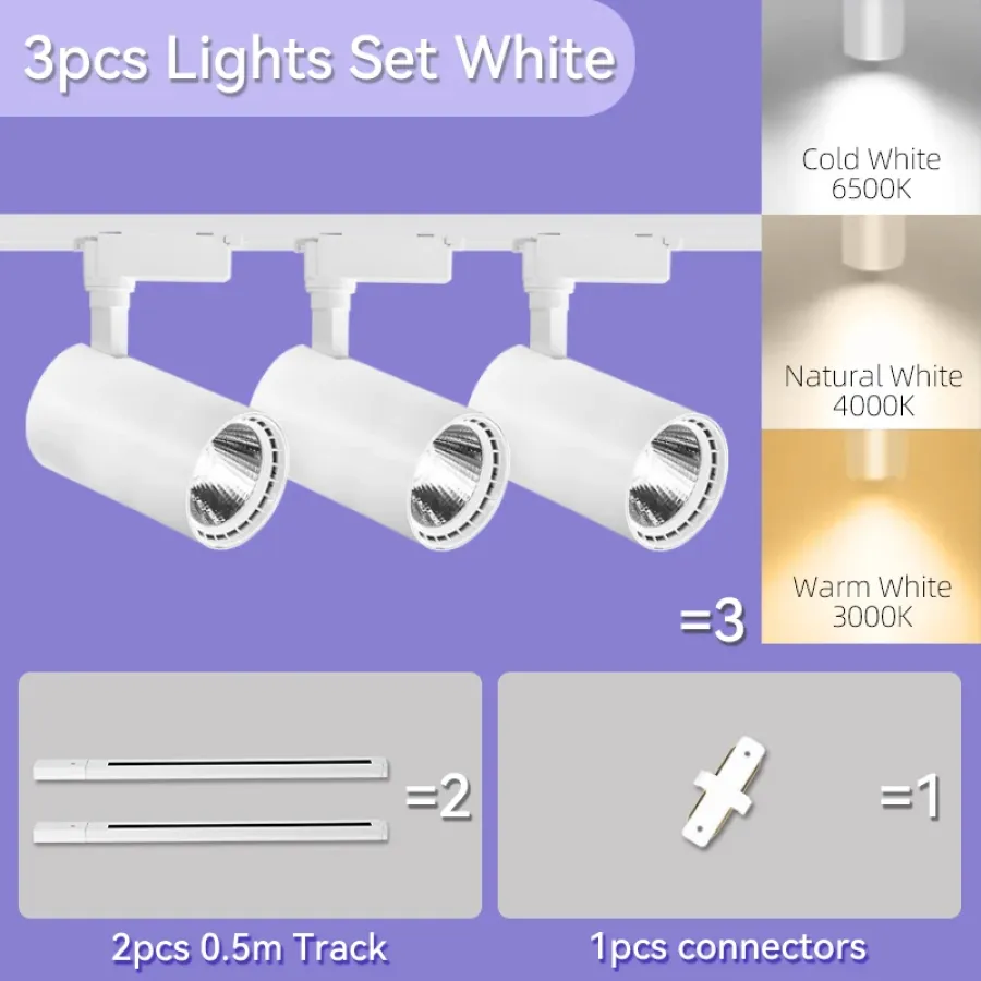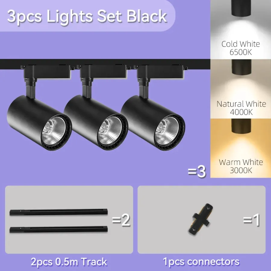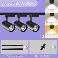 3pcs White/Black Body 1set: 3 lights+2 0.5m rails+1 connection