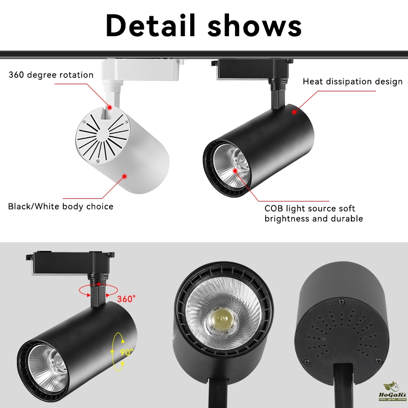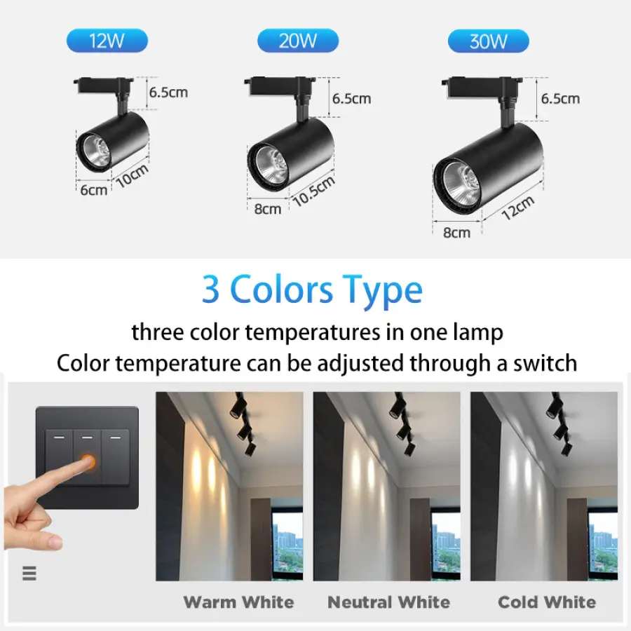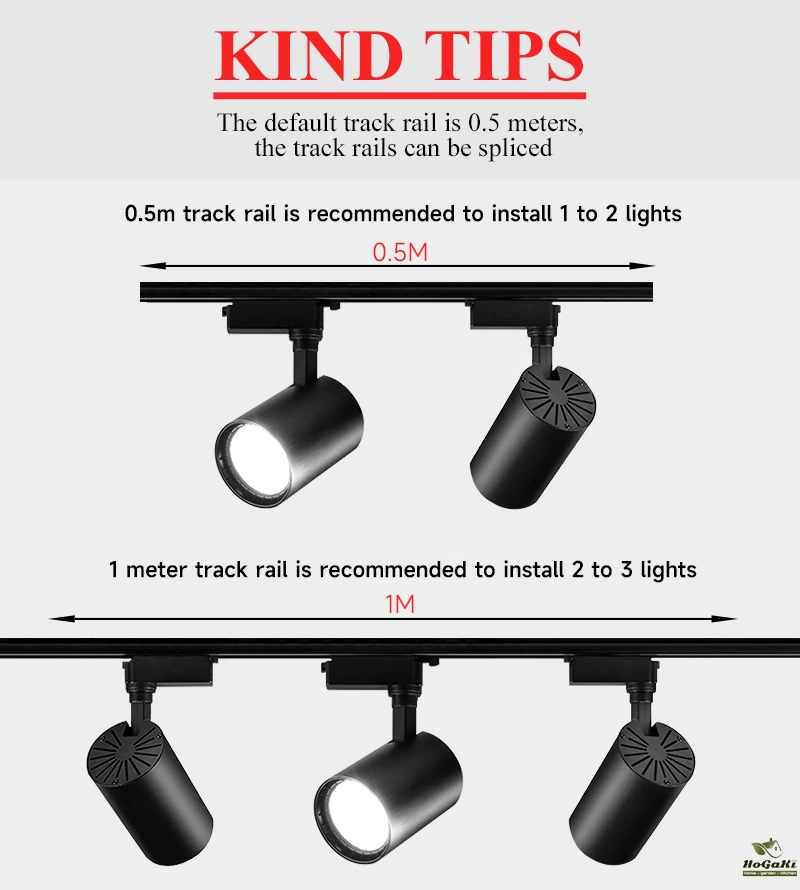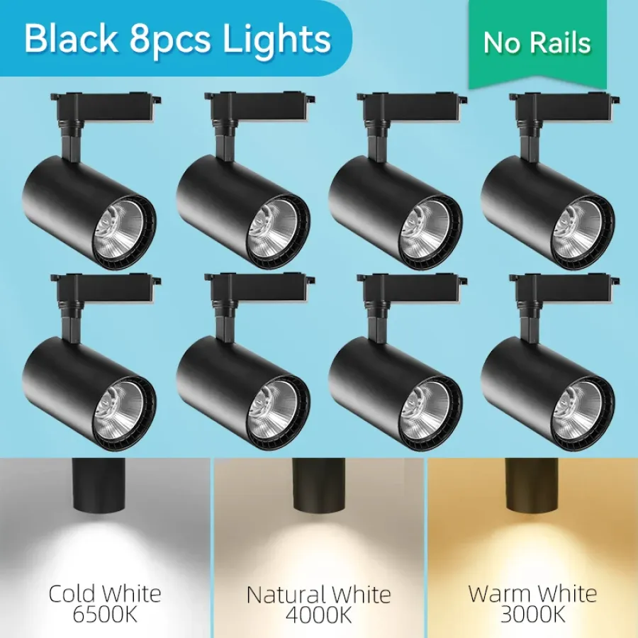 3pcs White/Black Body 1set: 3 lights+2 0.5m rails+1 connection