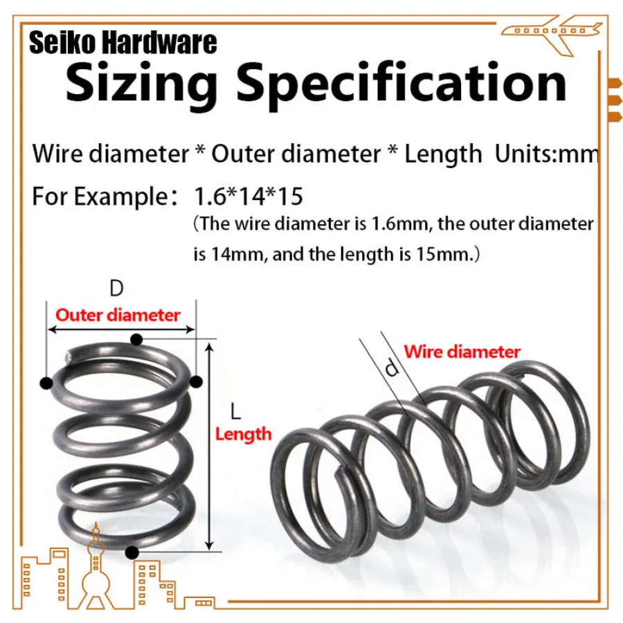 10-20pcs/lot 0.4mm 0.4x3/4/5/6/7/8/10/12*L Stainless steel compression spring OD=4mm-12mm length 5-50mm