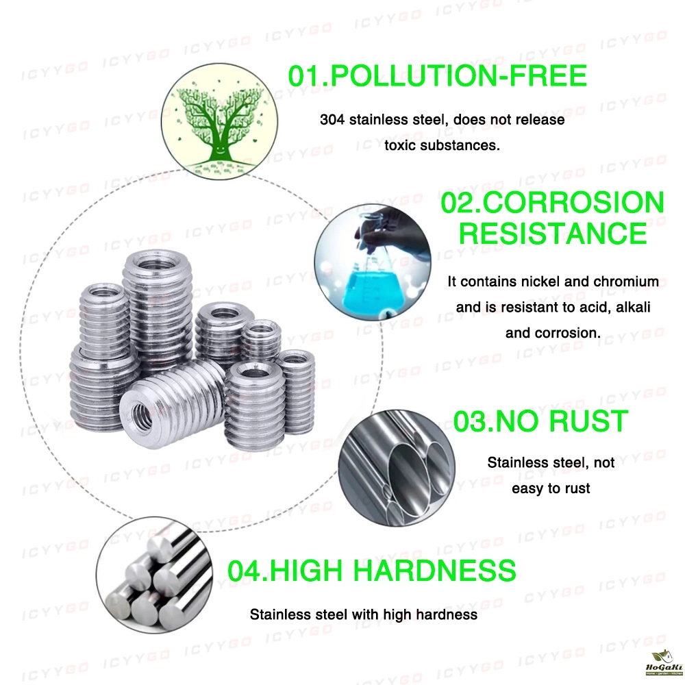2pcs M6 M8 M10 M12 M14 M6 Full Teeth Hollow Tube 1.0mm Fine Teeth Rod Connection Tube Lamp Cap Connection Thread Teeth Tube