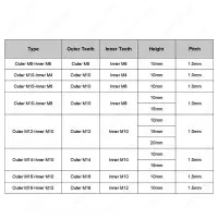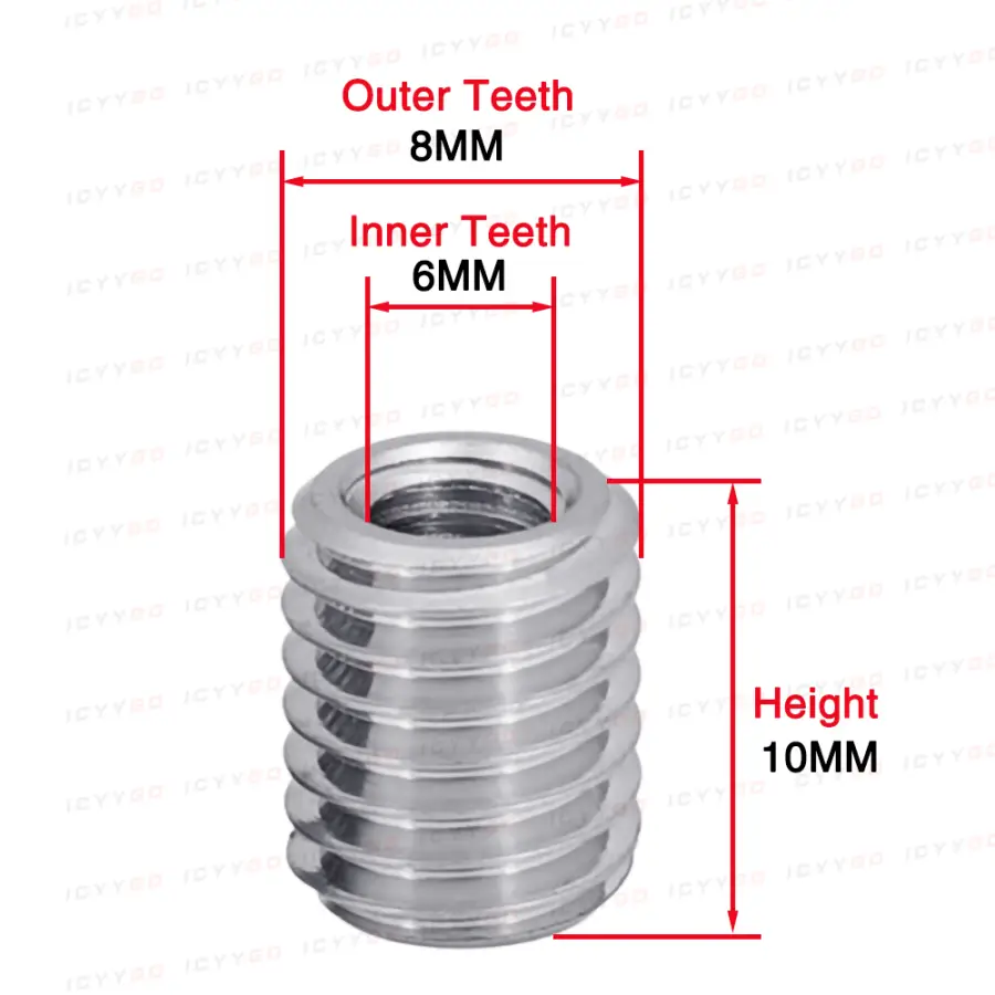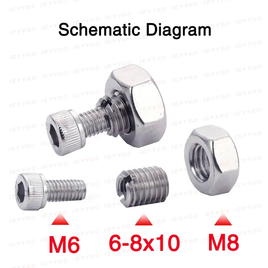 Example: According to screw: M6 nut: M8 so choose: 6-8x length