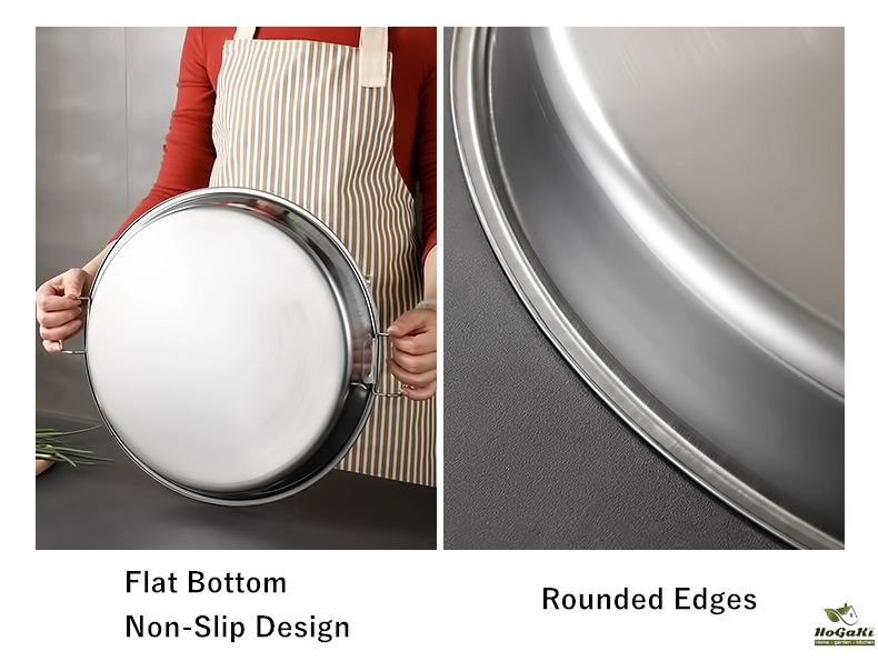 4. The edge of the plate is smooth and round, which does not hurt your hands, and the handle design is convenient to move.