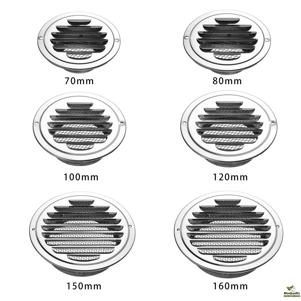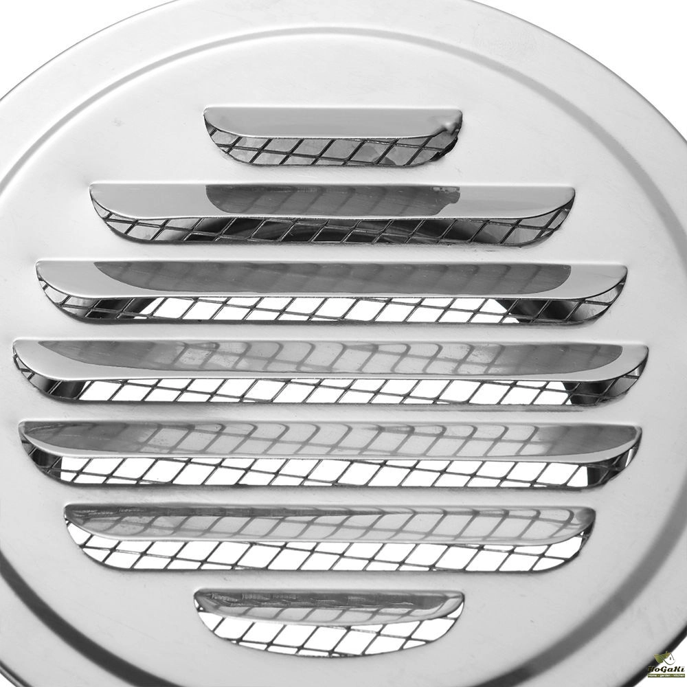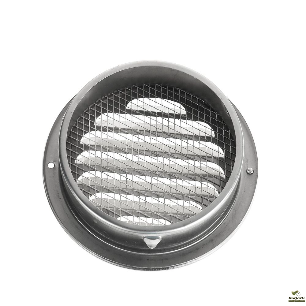 Stainless steel ventilation grilles for flange insect protection.