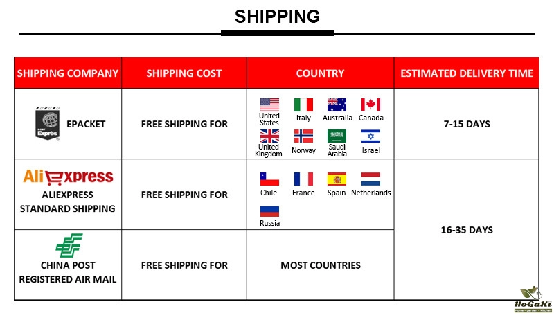 Packages from our warehouse in China will be shipped by ePacket or EMS depending on the weight and size of the product. Packages shipped from our US warehouse are shipped through USPS.
