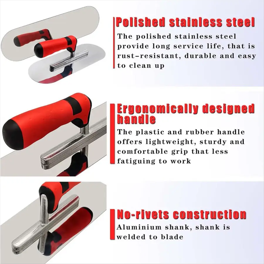 Essential Masonry Tools: This stainless steel pool trowel set is indispensable for efficiently applying, spreading, smoothing, and polishing concrete, cement, and drywall. It's perfect for residential or commercial construction and masonry projects.