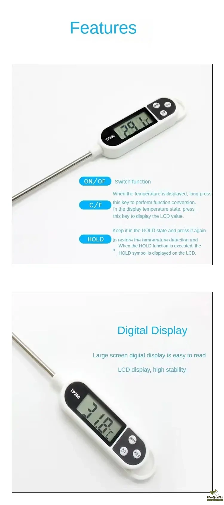Food Thermometer Digital Real-Time Reading Meat And Beverage Thermometer With LCD Display And Probe Electronic Kitchen Thermomet