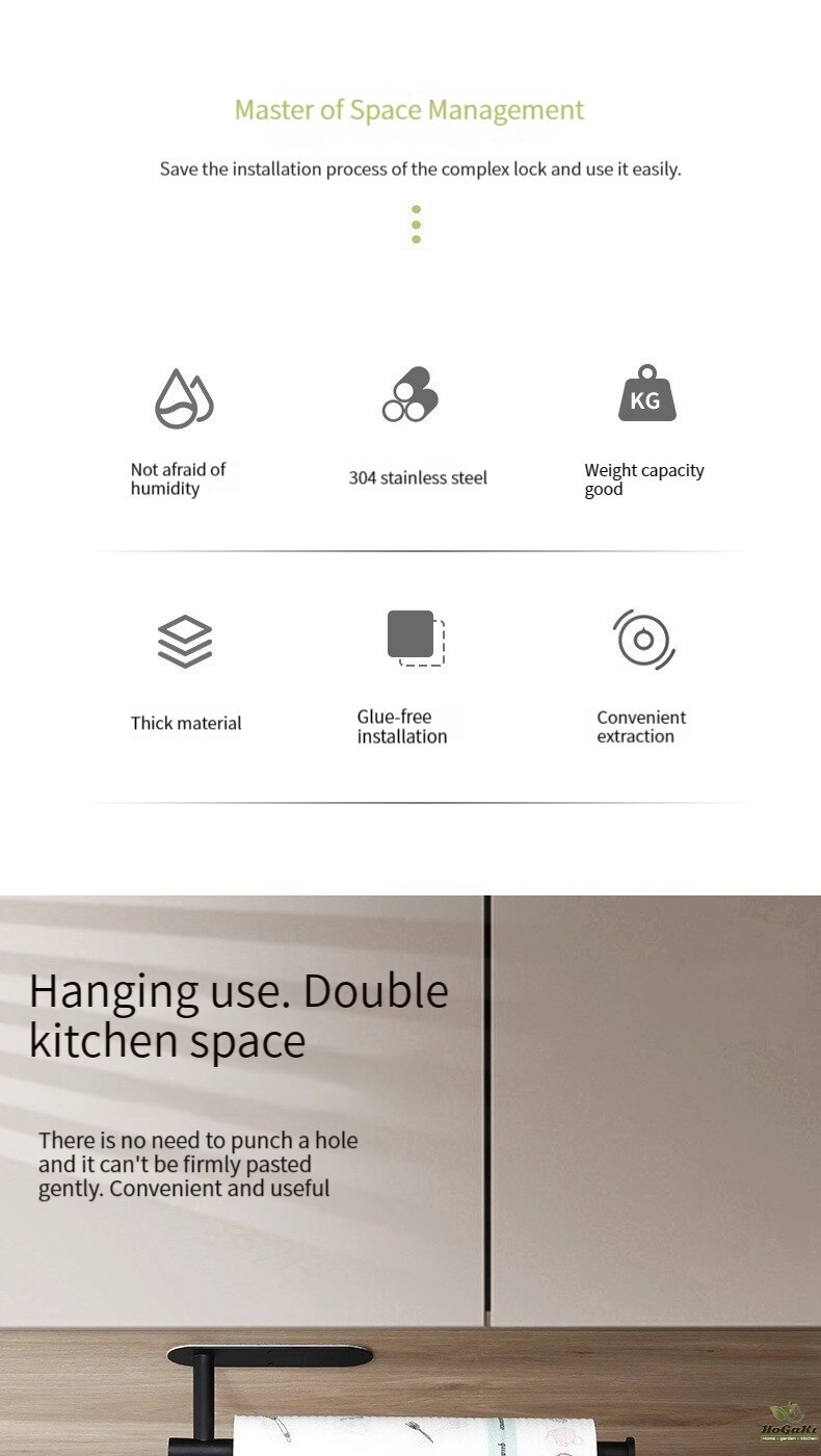 • Versatile Storage Solution :This wall-mounted rack not only holds paper towels but also cling film wipes, offering a convenient storage solution for your kitchen and bathroom essentials.
