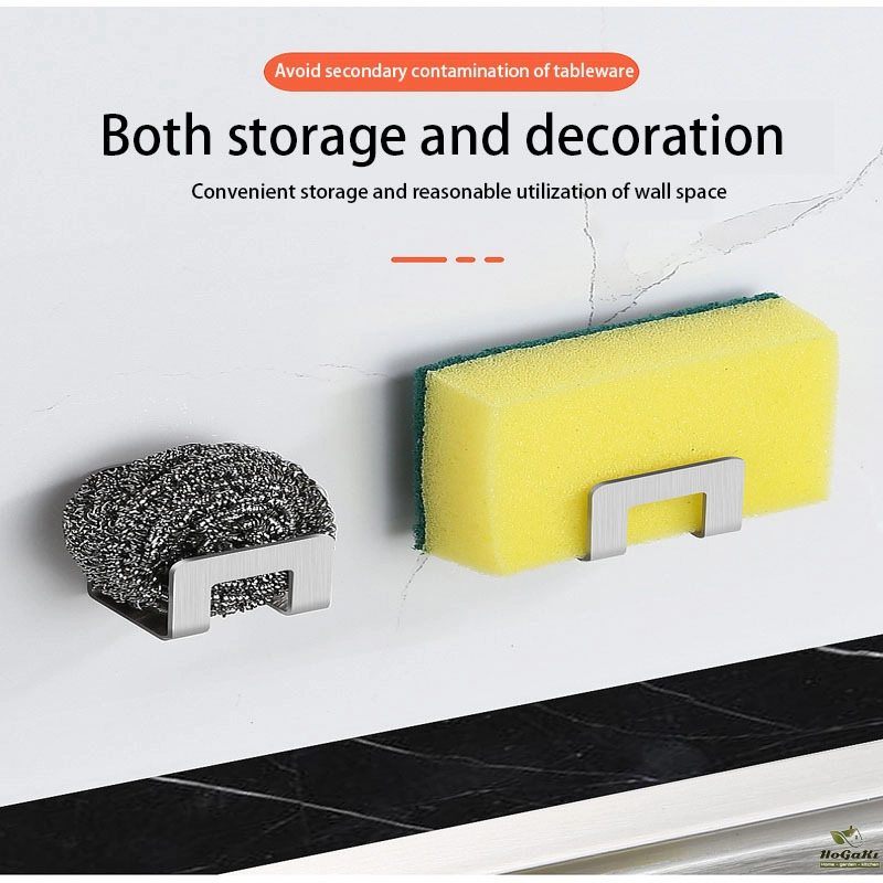 Stainless Steel Sink Tray Drainer Rack Kitchen Sink Sponge Holders Self Adhesive Hook Storage Holder Kitchen Wire Rag Organizer