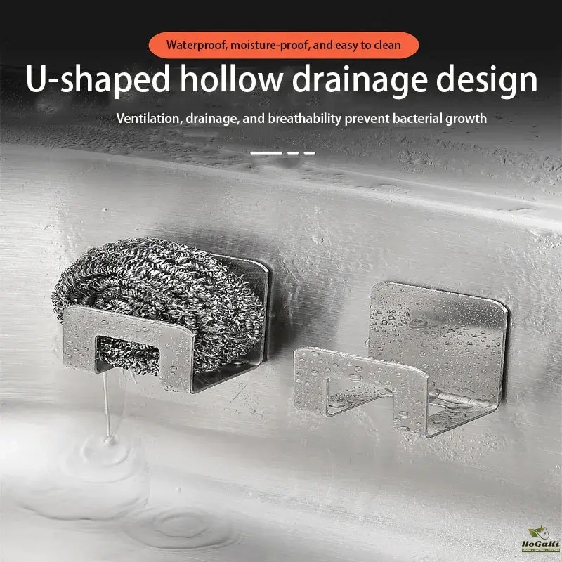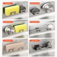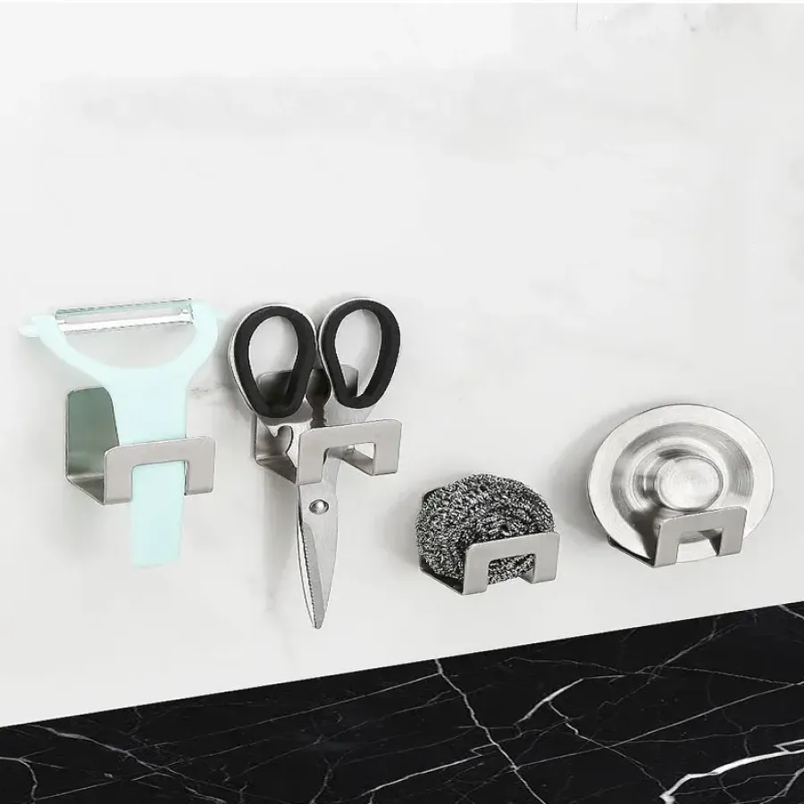 Stainless Steel Sink Tray Drainer Rack Kitchen Sink Sponge Holders Self Adhesive Hook Storage Holder Kitchen Wire Rag Organizer