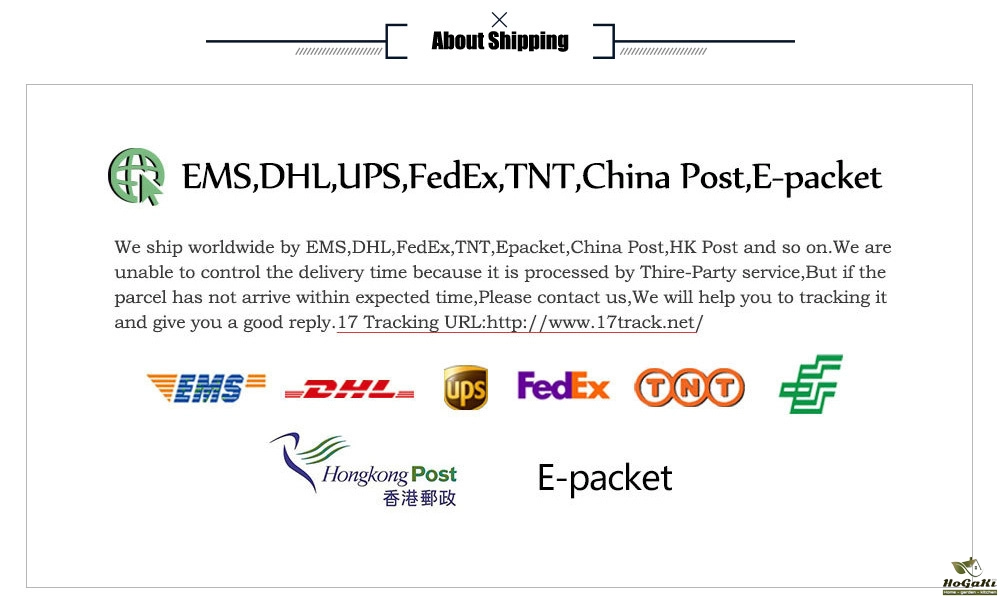 Packages from our warehouse in China will be shipped by ePacket or EMS depending on the weight and size of the product. Packages shipped from our US warehouse are shipped through USPS.