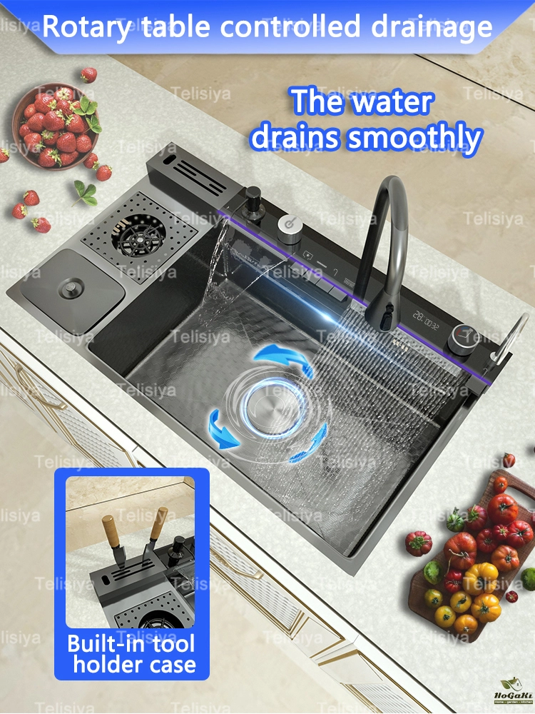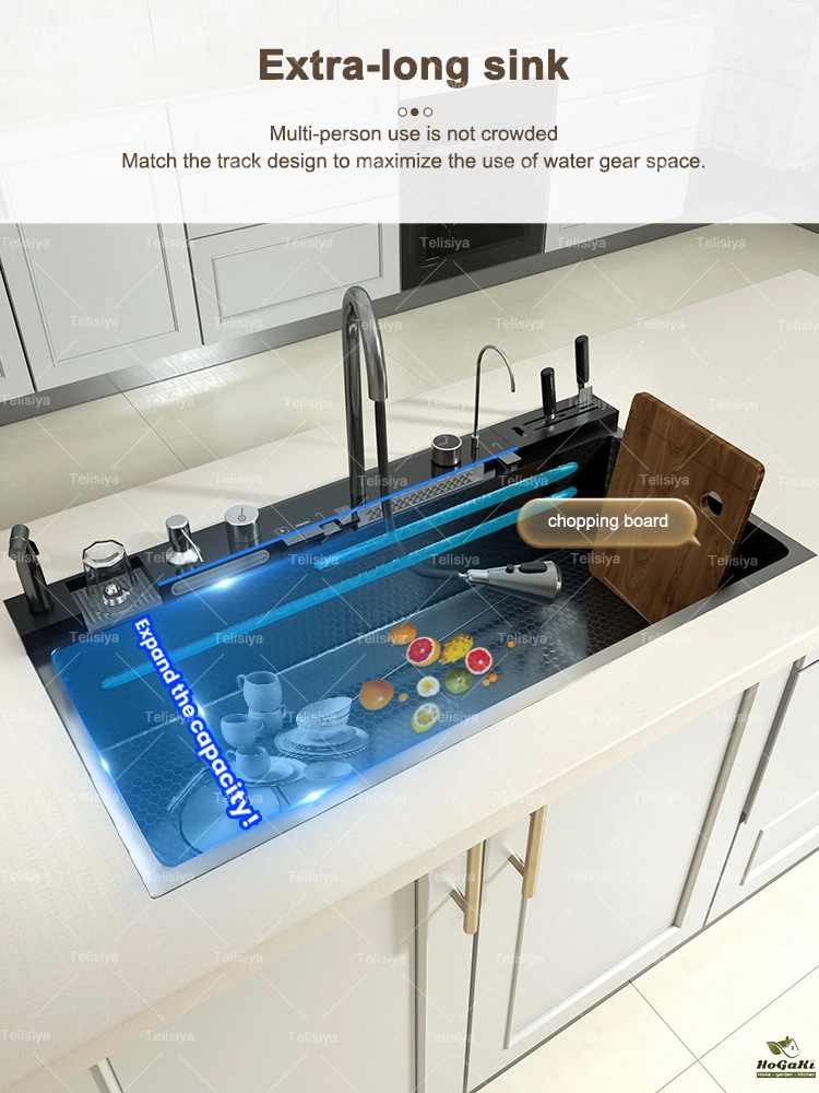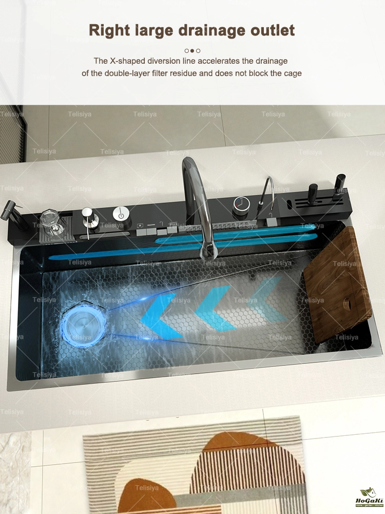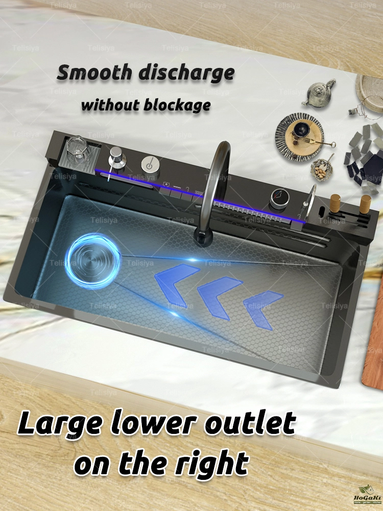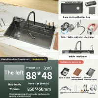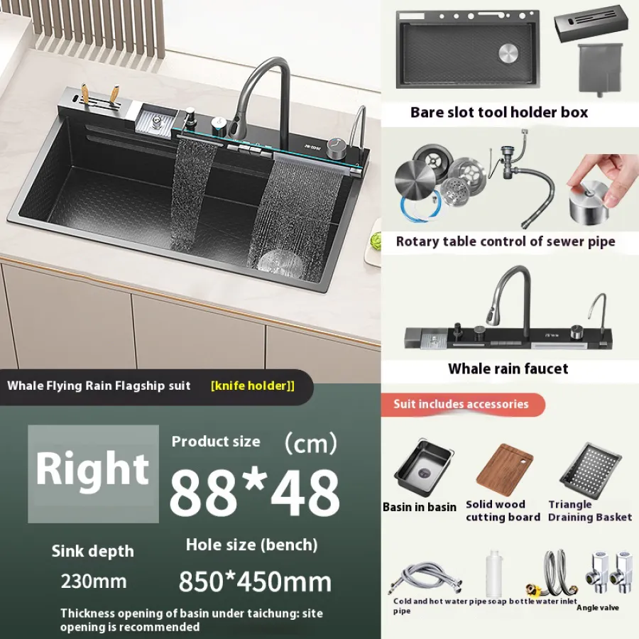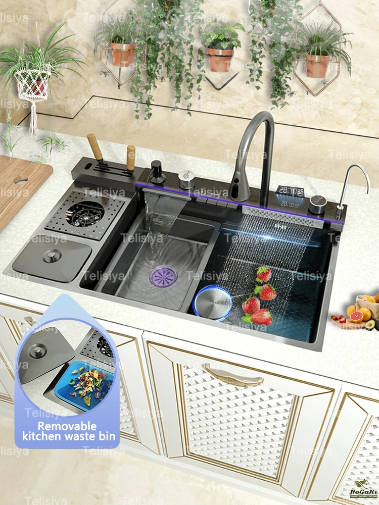 Stainless Steel Kitchen Sink with Waterfall Extra Large Single Slot Digital Display Dishwashing Basin Oversized Sinks 100x50cm