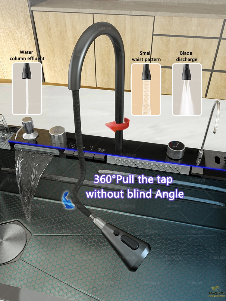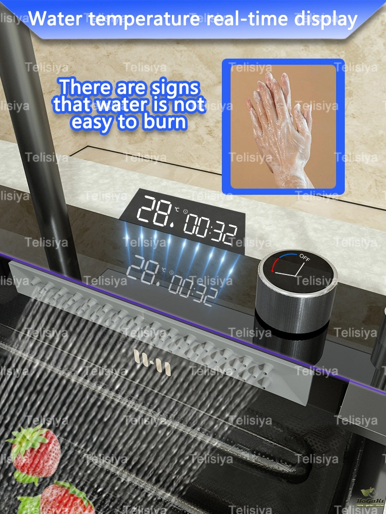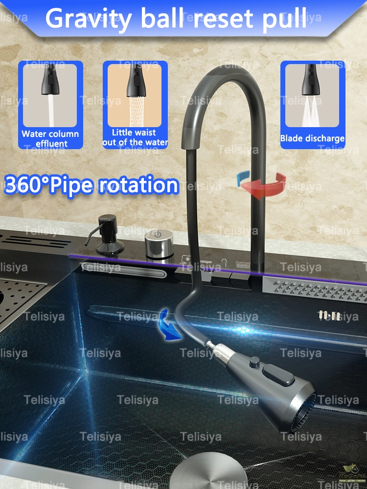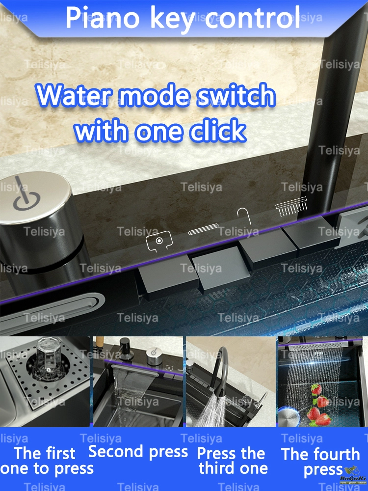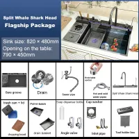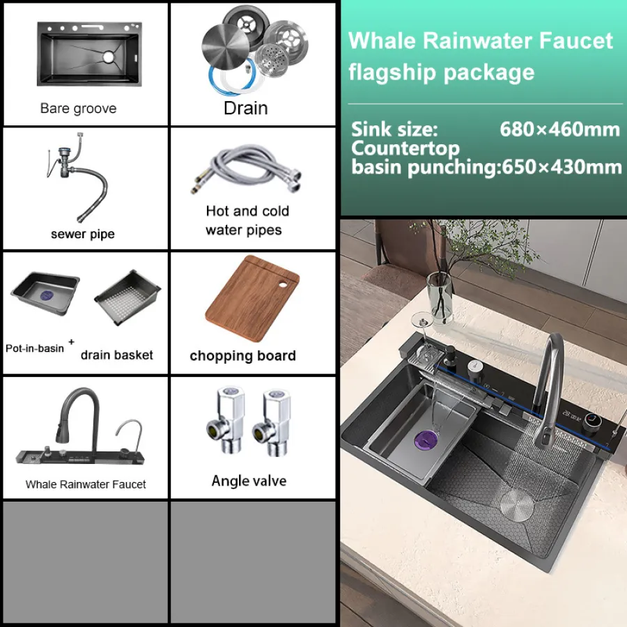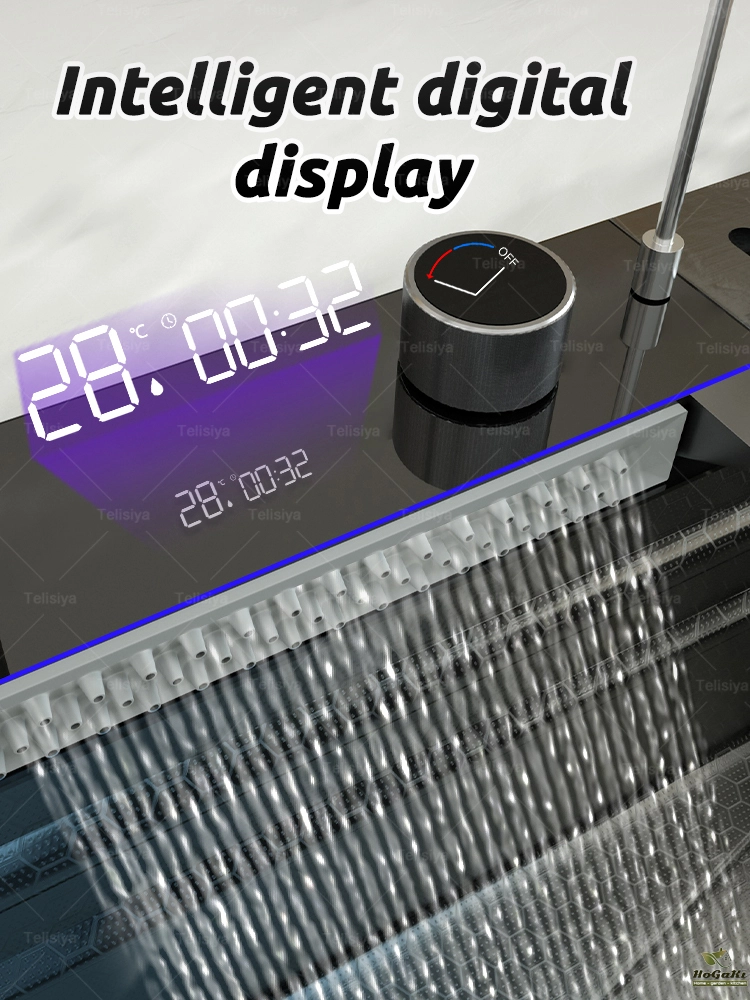 Stainless Steel Kitchen Sink with Waterfall Extra Large Single Slot Digital Display Dishwashing Basin Oversized Sinks 100x50cm
