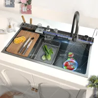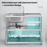Stainless Steel Sink Kitchen Household Thickened Single Trough with Bracket Wash Basin Sink with Platform Easy Landing