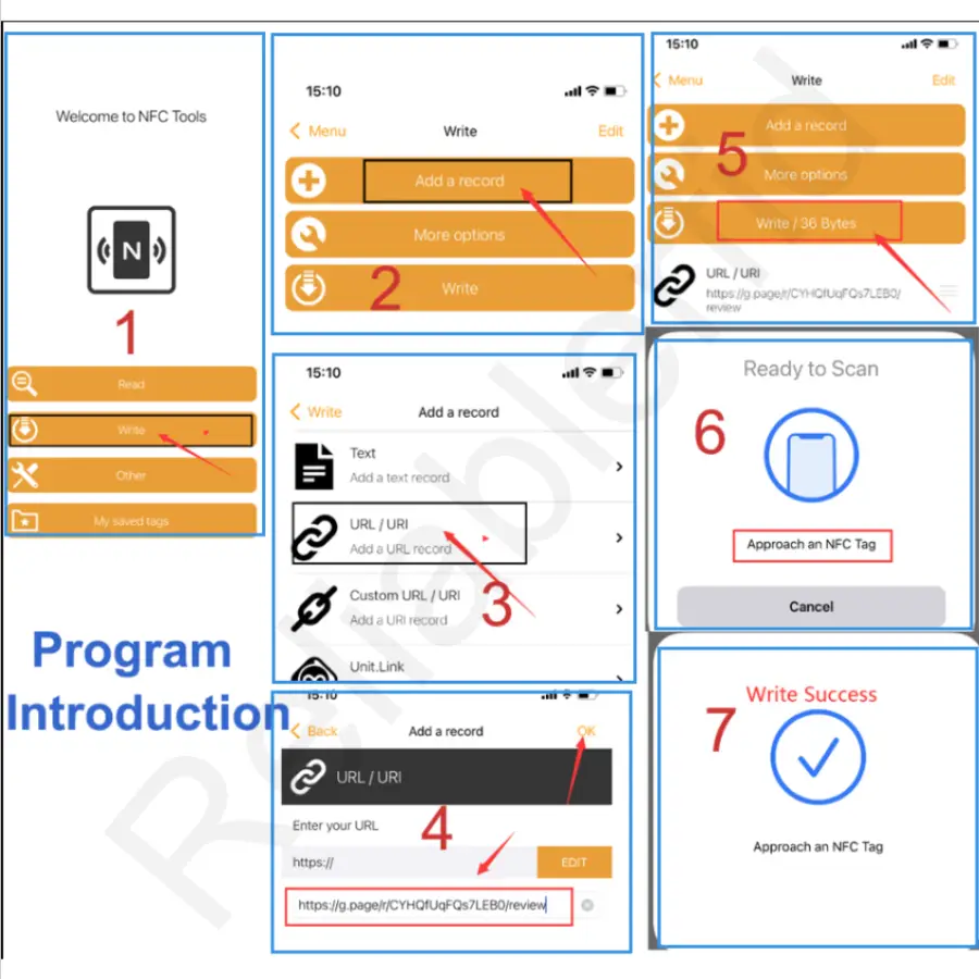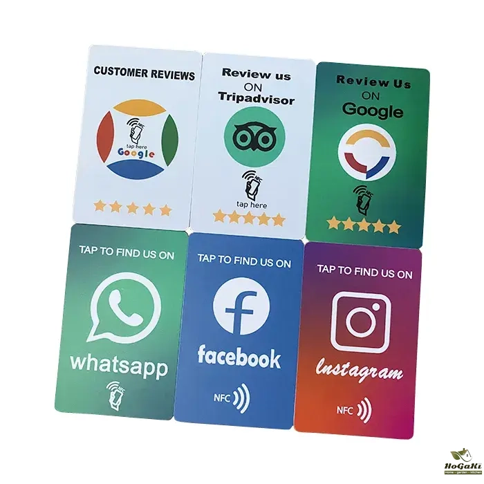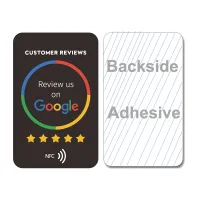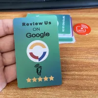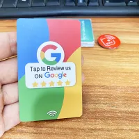 NFC quick link to Google Review or other soical media, you can program the NFC cards with NFC enabled mobile phone with NFC related APP, Such as APP "NFC Tagwriter", and write you google reviews URL into it