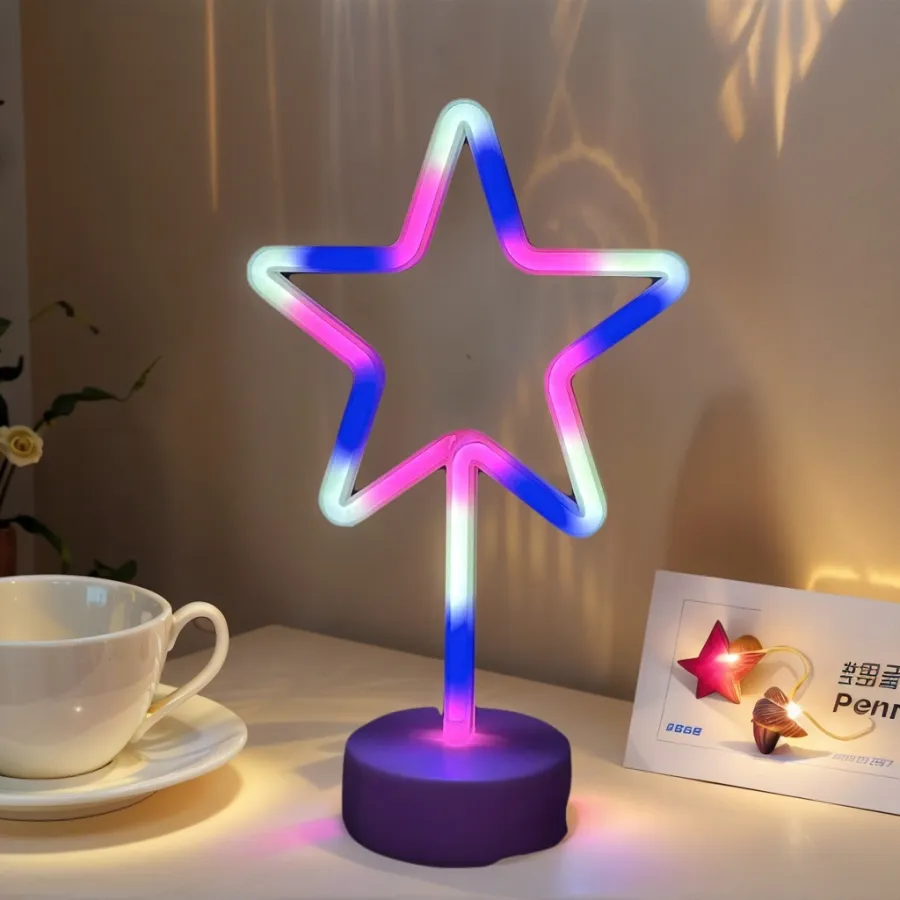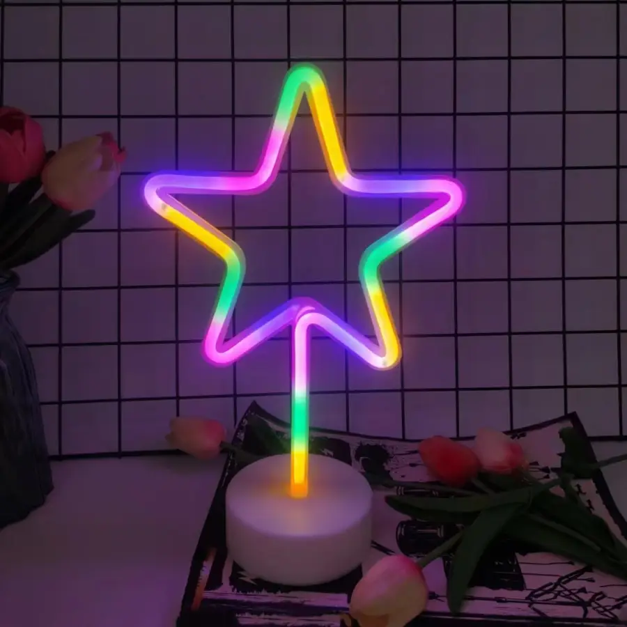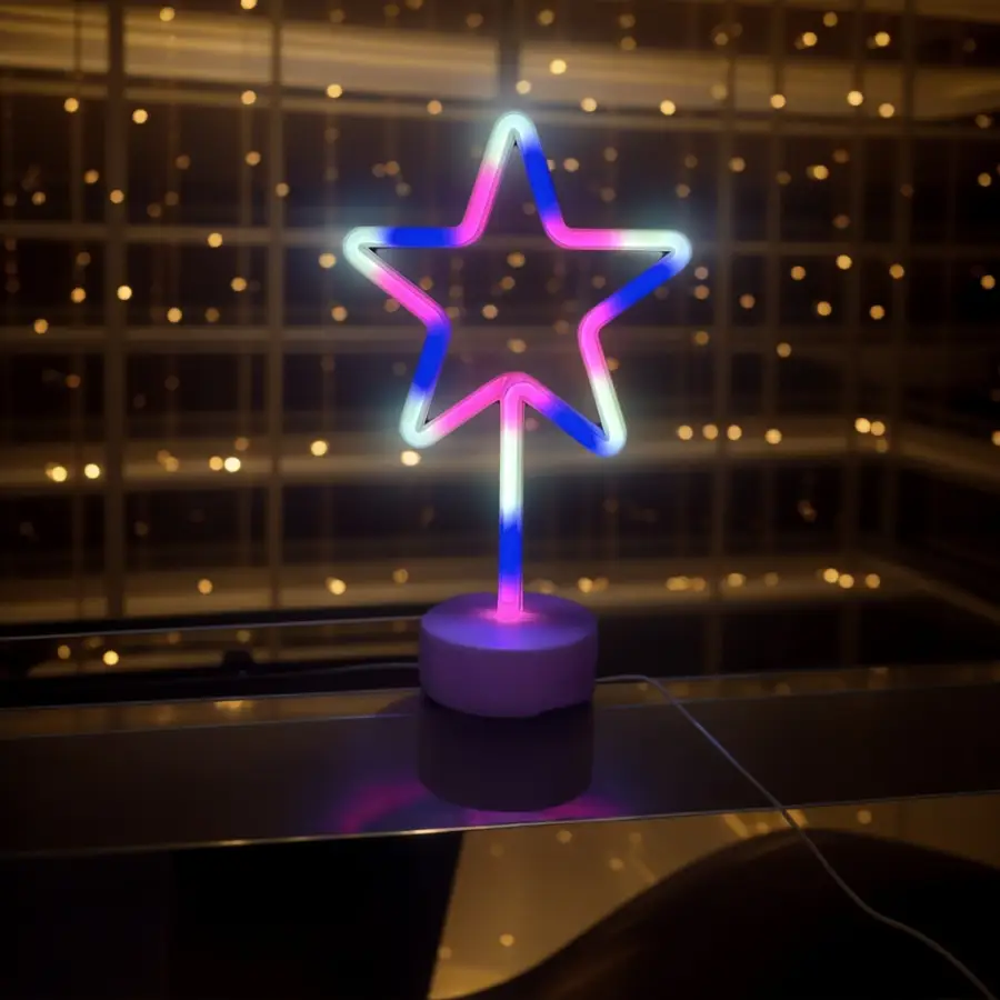 Neon lights are made of flexible LED strips and acrylic backboards, with no risk of glass breakage or hazardous material leakage. And even if used for a long time, it will not generate heat. When using USB, it is necessary to remove the battery and store the night light in a cool and dry place. If it is not used for a long time, please remove the battery.