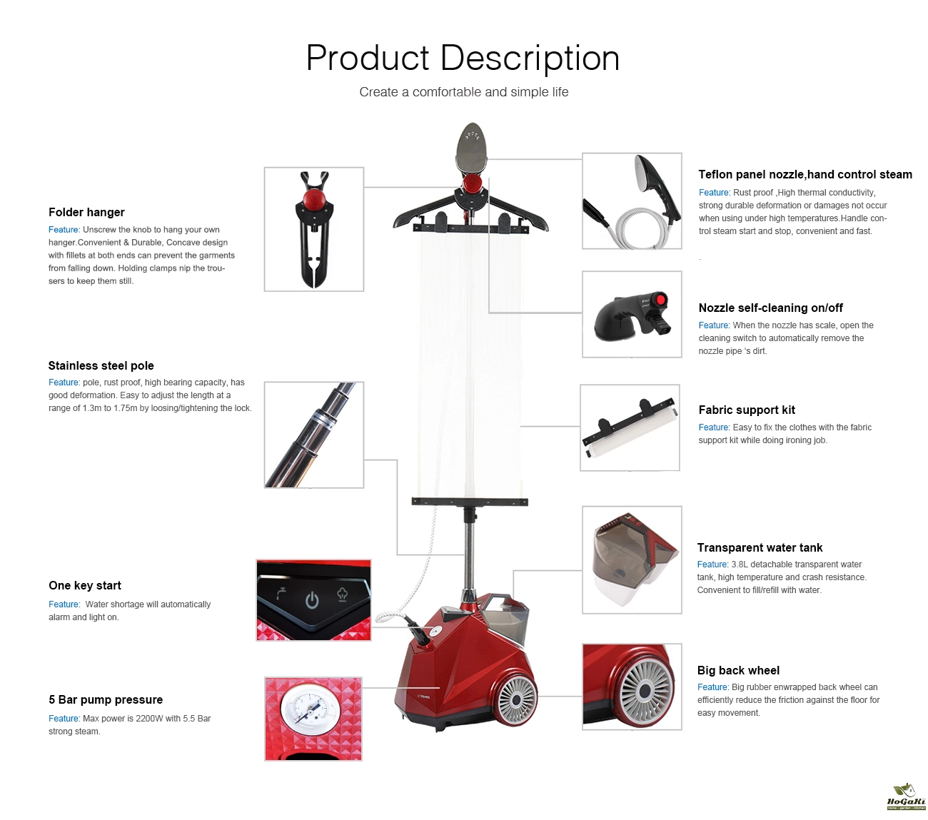 | Accessories | Brush, Support kit,Steam hose,Water tank,Delicate fabric guard,Pole,Fold hanger,Smart cover |