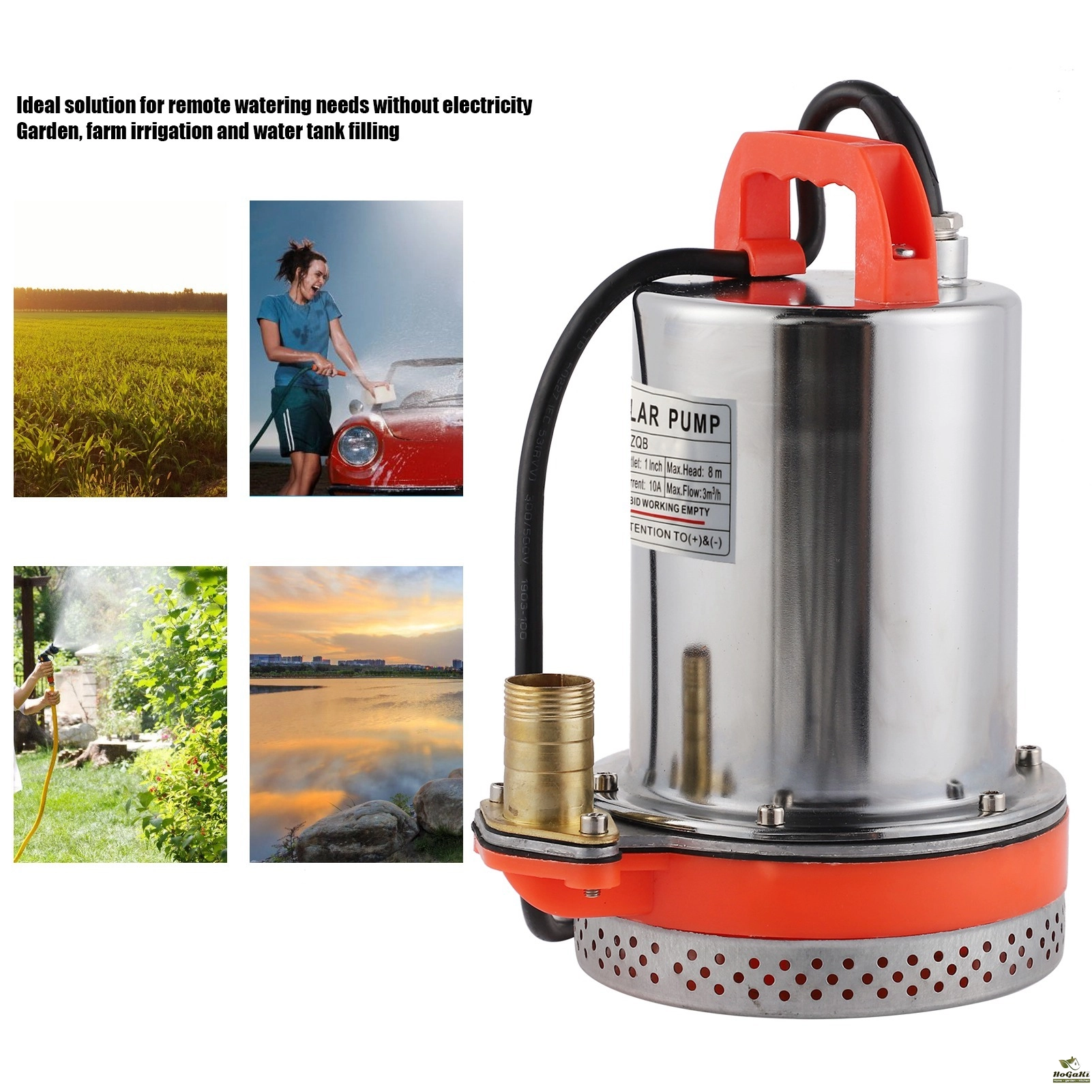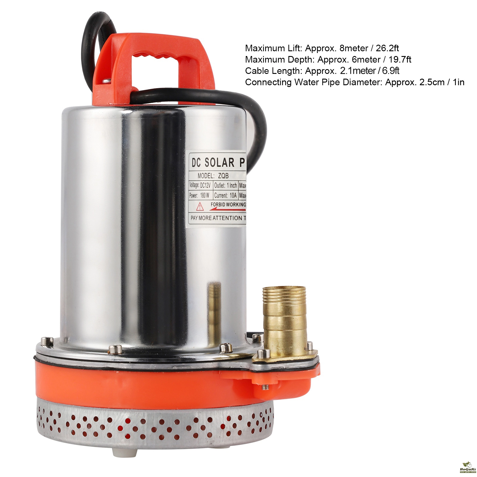 1. The outlet diameter is 1in(25mm) and the maximum lift is 8 meters, which can be used for batteries and solar panelsSpecification: