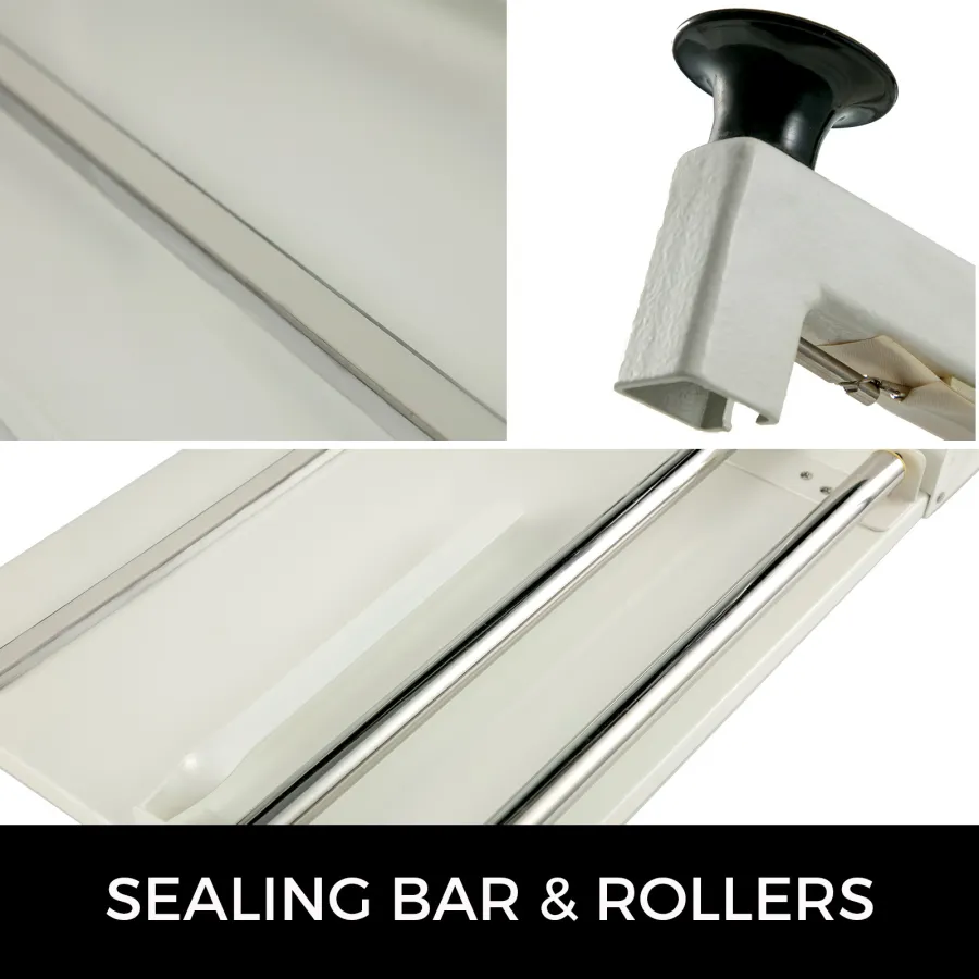 【CONVENIENT SEALING OPERATION】- Film can better work on the roller, flat and smooth. Cooperating with silicone strip, a lever is used to seal products conveniently. Seal 18" length film or plastic bags.