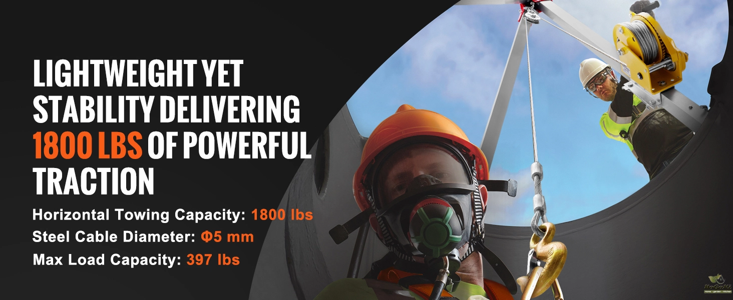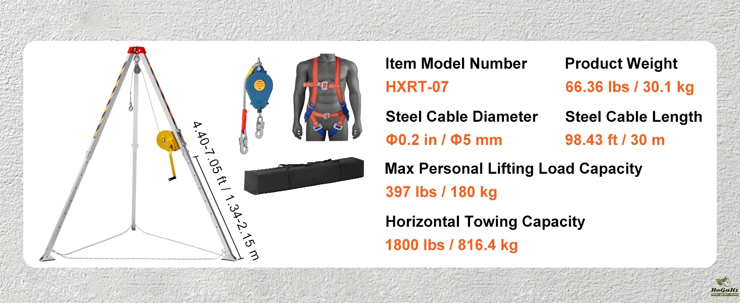 1800/2600 lbs Towing Capacity: Our confined space tripod is your reliable companion for challenging situations! With a sturdy design and a pull force of 1800 lbs, it's ready to tackle any rescue mission. The Φ5 mm steel wire cable can lift up to 397 lbs, making it perfect for tough jobs.