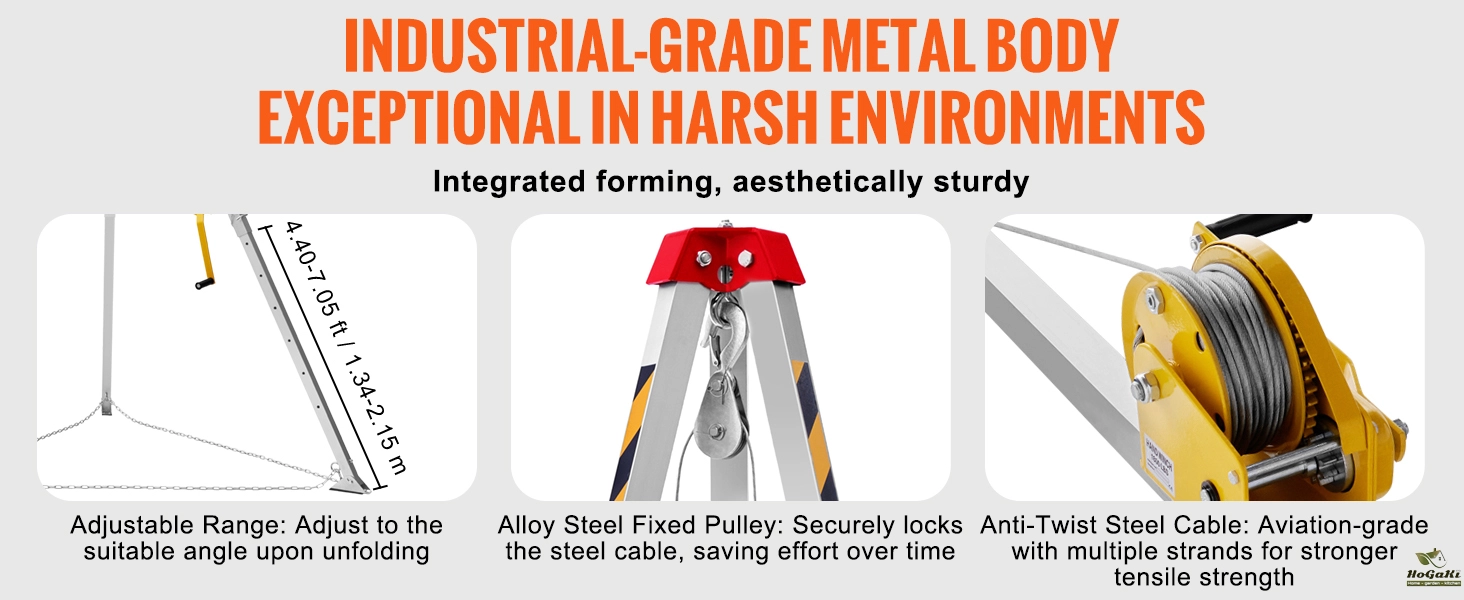 One-Piece Molded Durable Design: The rescue tripod is built tough with a solid metal body and secure connections. The alloy steel pulley effectively locks the cable and is effortless to use. The anti-rotation aviation-grade steel cable ensures security and strength for all your high-intensity tasks.