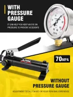 The hydraulic ram jack is built with durable metal construction and coated with anti-corrosion paint, offering enhanced resistance to wear and impact. This design ensures a longer lifespan and reliable performance in demanding conditions.