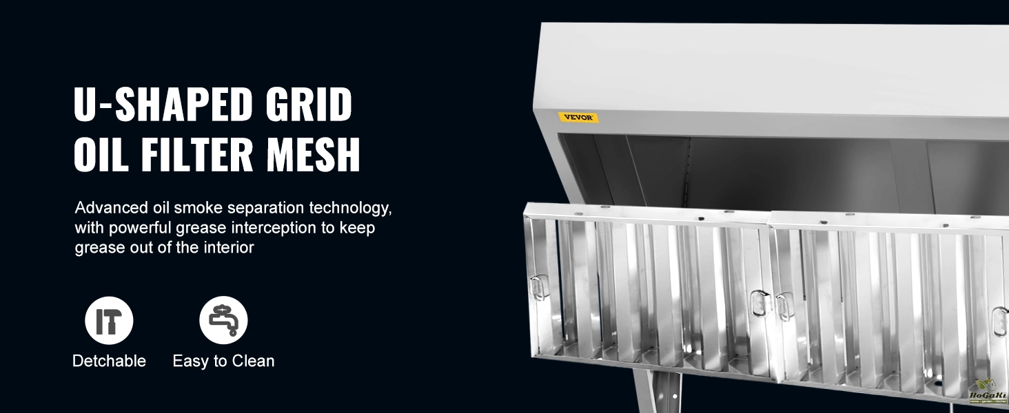 Easy to Clean: 2 removable U-shaped grid oil filter meshes allow for thorough cleaning both inside and out, while the stainless steel material ensures that grease adheres to the surface, making cleaning a breeze without leaving any odors behind. Keep your kitchen spotless and hygienic with ease.