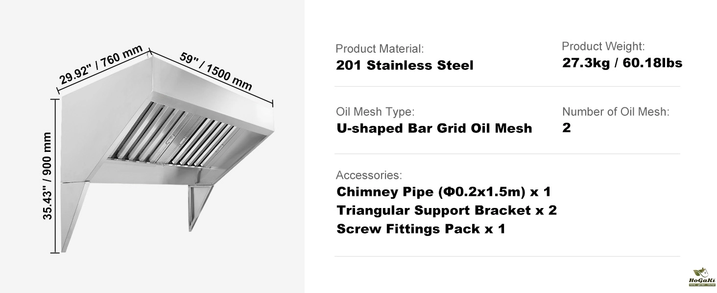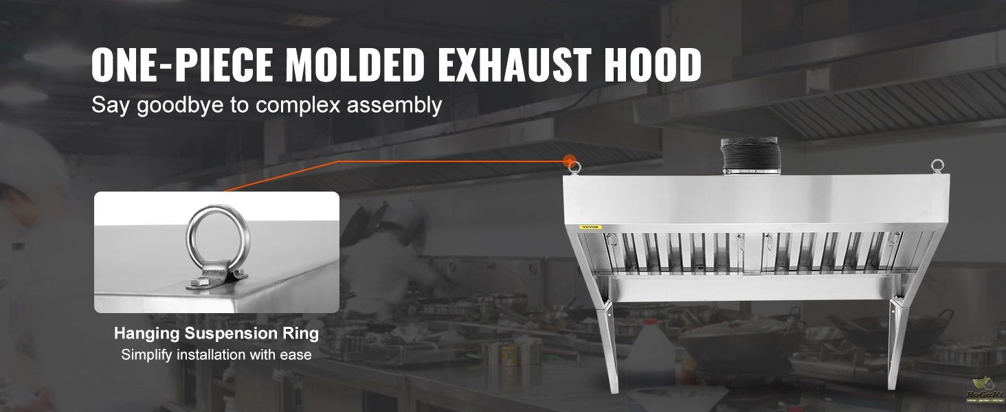 Easy Installation: No complicated assembly required! Our rust-resistant vent hood is pre-assembled as one unit and comes with hanging loops for convenient installation. Easily install the restaurant hood vent and upgrade your kitchen with ease.
