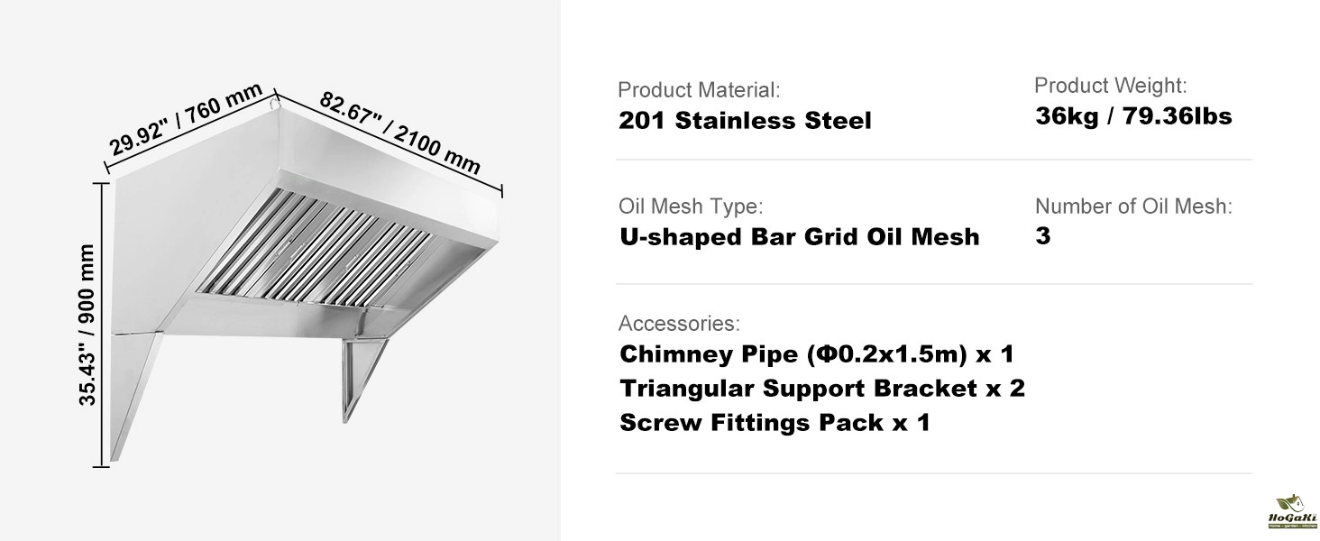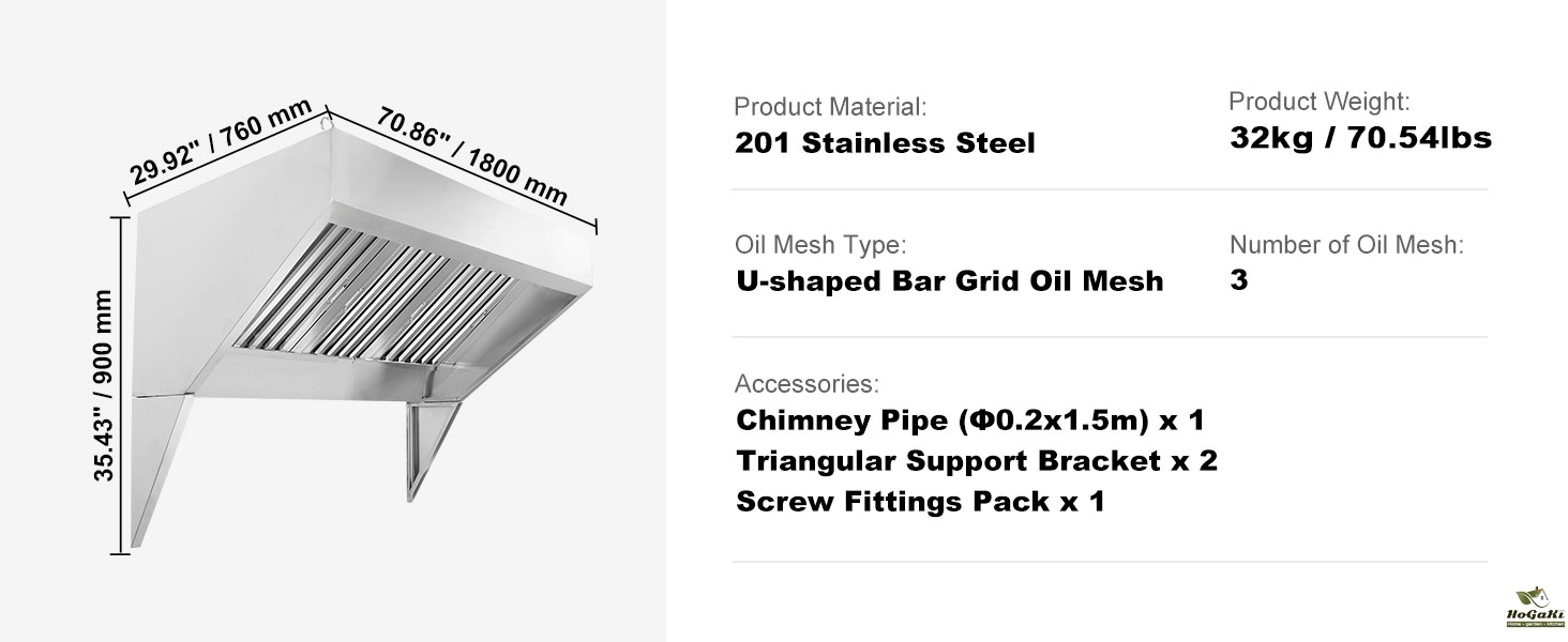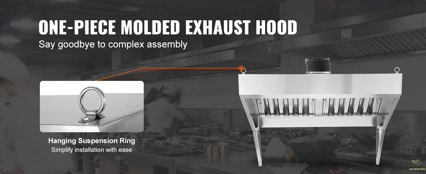 Effective Smoke Control:This high-quality commercial exhaust hood is equipped with two additional smoke-locking tripods compared to standard models. With a generous 59-inch smoke capture area, it efficiently manages smoke from multiple cooktops, preventing odors from lingering in your space.