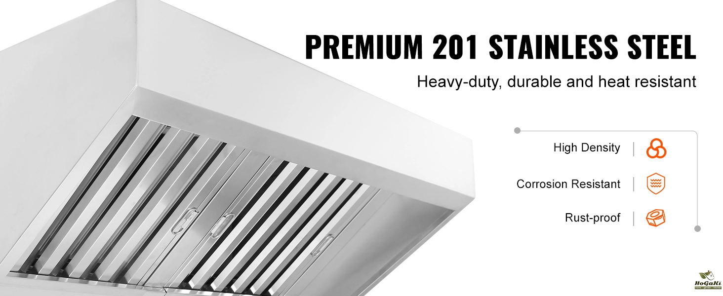 Exceptional Durability:Transform your kitchen with theSucceBuy 5FT concession trailer hood! Crafted from premium 201 stainless steel, this exhaust hood offers remarkable heat resistance and strength. Its robust anti-corrosion features and stable design prevent deformation over time.