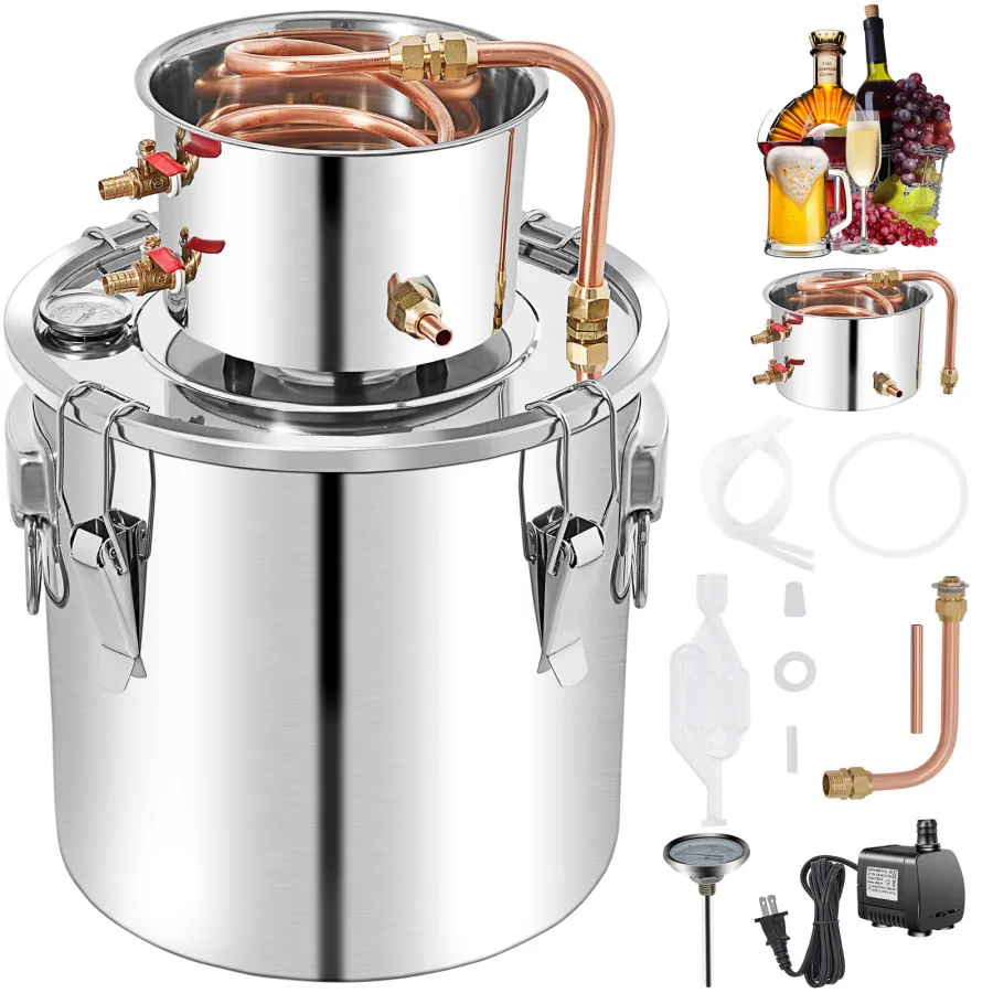 This comprehensive alcohol distillation system is ideal for both novices and seasoned distillers, offering exceptional cooling efficiency. Perfect for crafting fruit wines, purifying water, producing brandy, or extracting essential oils, it is compatible with various heat sources such as gas stoves, firewood, and electric ceramic heaters.