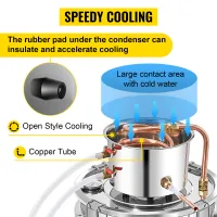 Equipped with built-in Celsius and Fahrenheit thermometers, this still allows for precise temperature monitoring, enhancing the distillation process. The cooling water circulation is essential when temperatures approach 80 degrees, ensuring accurate and controlled distillation.