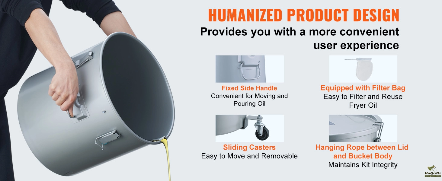 Convenient to Use: Our fryer oil bucket is equipped with detachable casters for convenient moving and an ergonomic fixed side handle for easy oil pouring. And let's not forget the lid and bucket connected by a handy hanging rope, keeping everything together and saving you precious space. Convenience at its finest!