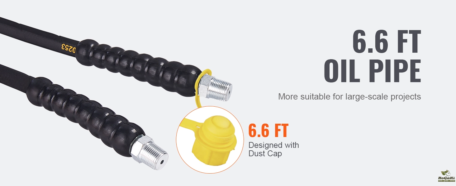 The included 6.6 ft/2 m hydraulic oil pipe ensures ample length for tackling large-scale projects, while the dust-proof cap safeguards against clogs and maintains optimal performance.
