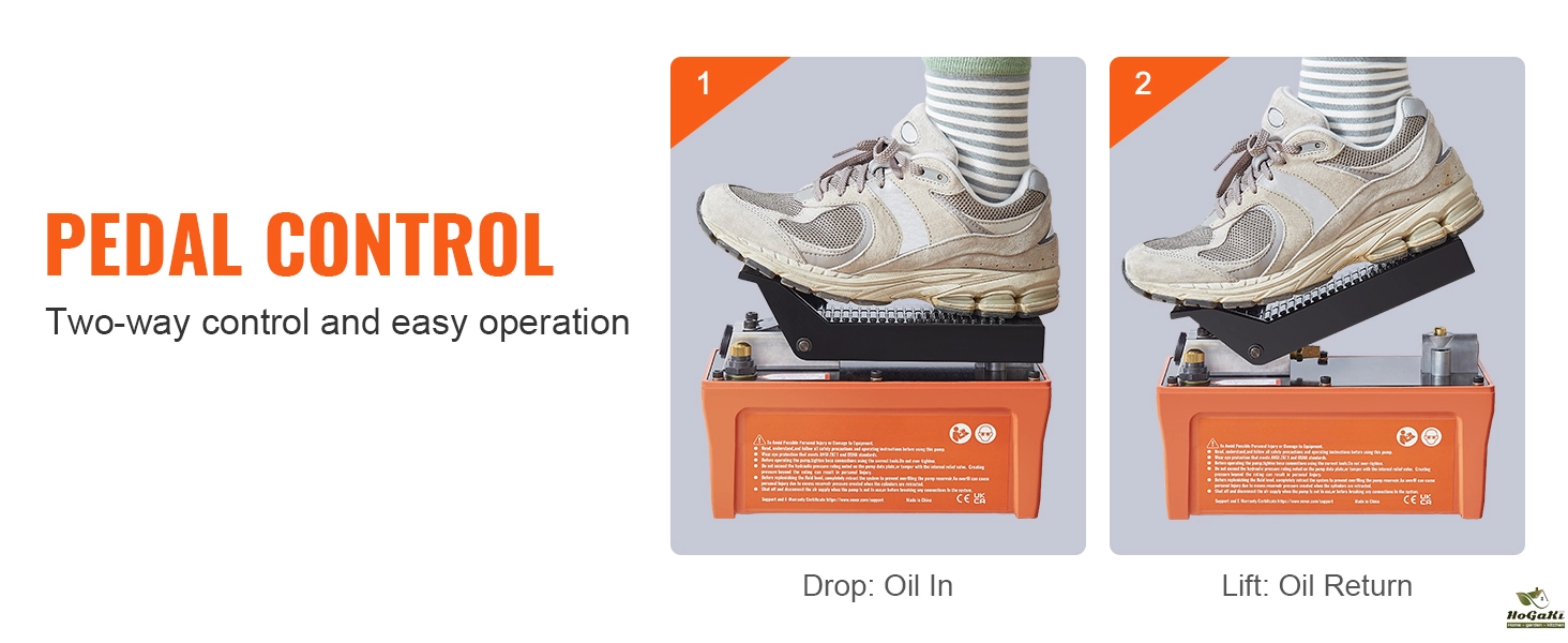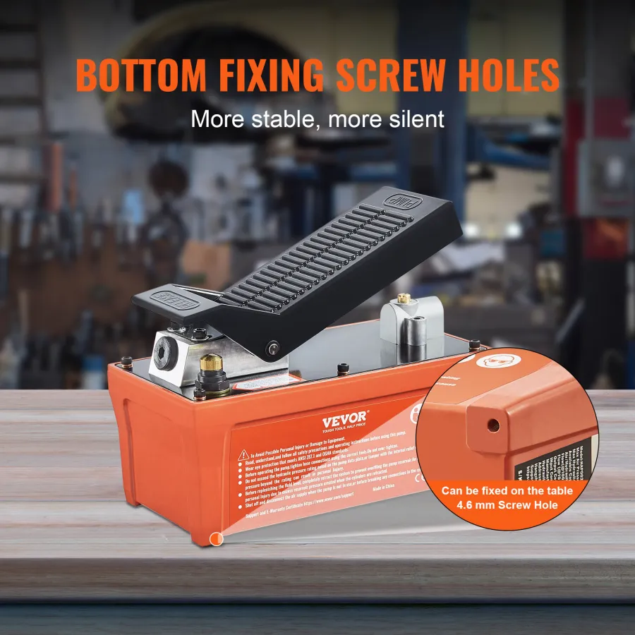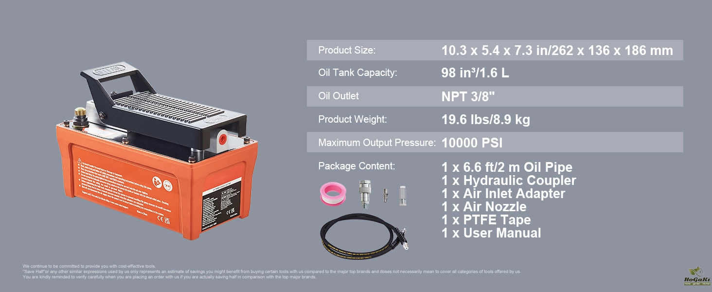 Instant Activation for Effortless Power: Introducing the hassle-free foot-operated air/hydraulic pump, complete with hydraulic oil right out of the box. Say goodbye to tedious setup – simply step on the pedal for effortless pressure application and let it rebound for release. This user-centric design maximizes labor-saving convenience.