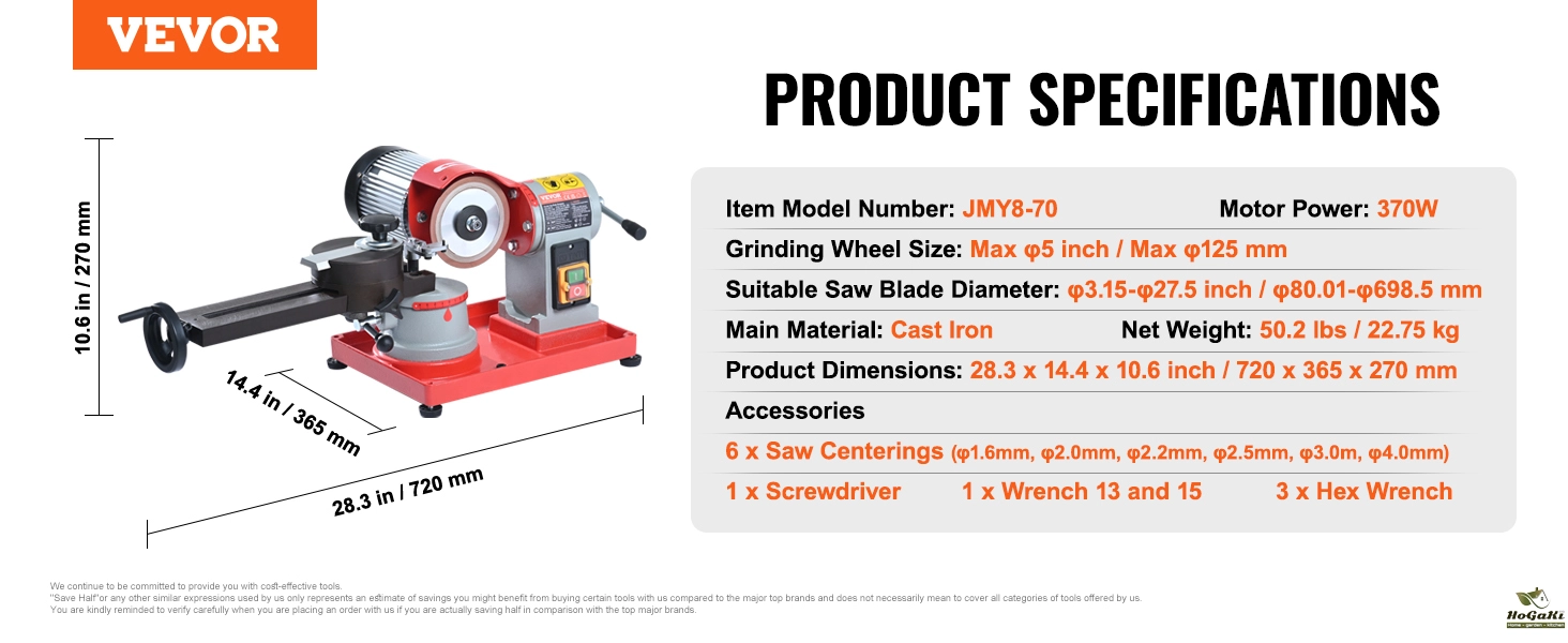 Versatile & Ready for Demands: With 6 different-sized saw centerings, our saw blade sharpener machine can effortlessly tackle φ3.15" to φ27.5" circular saw blades. Whether for unconventional saw blades, dense or loose teeth, left and right teeth with scraper, or saw blade with scraper, it is up to the task.