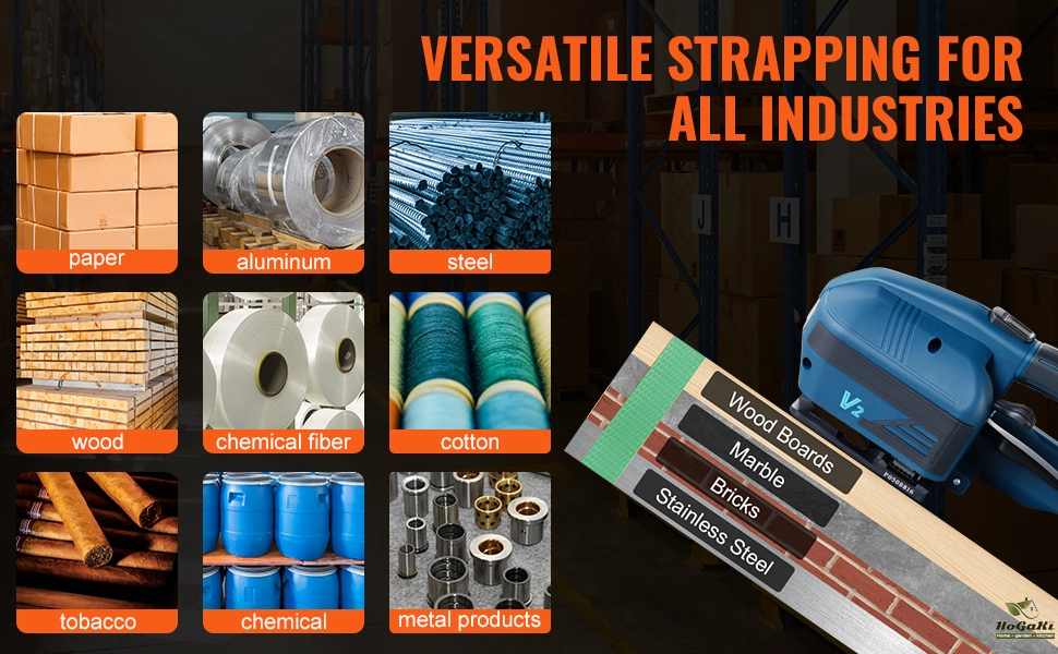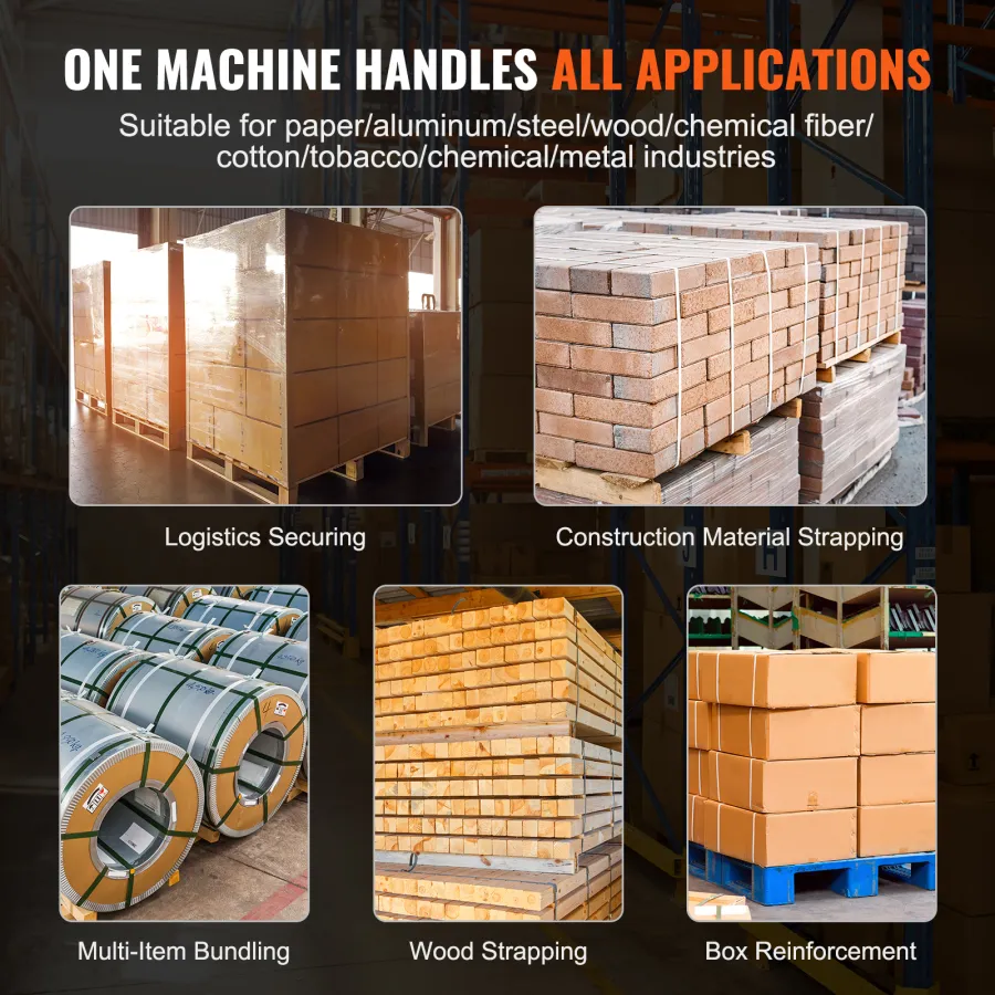 Perfect for Various Industries: Whether you're in paper, aluminum, steel, wood, chemical fiber, cotton, tobacco, chemical, or metal products, our strapping tool is here to help. It handles everything from wood boards and marble to bricks and steel, boosting your efficiency and product quality across the board.