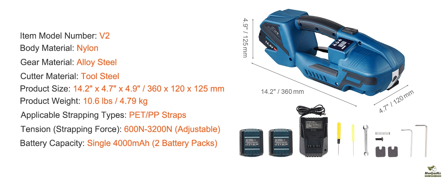 Large Battery for Efficient Production: Powered by two 4000mAh lithium batteries, this electric banding tool lets you strap up to 350 times on a full charge. It charges quickly in just 90 minutes and has a detachable design, so you can swap batteries on the go. Less downtime means more productivity and less hassle for you.
