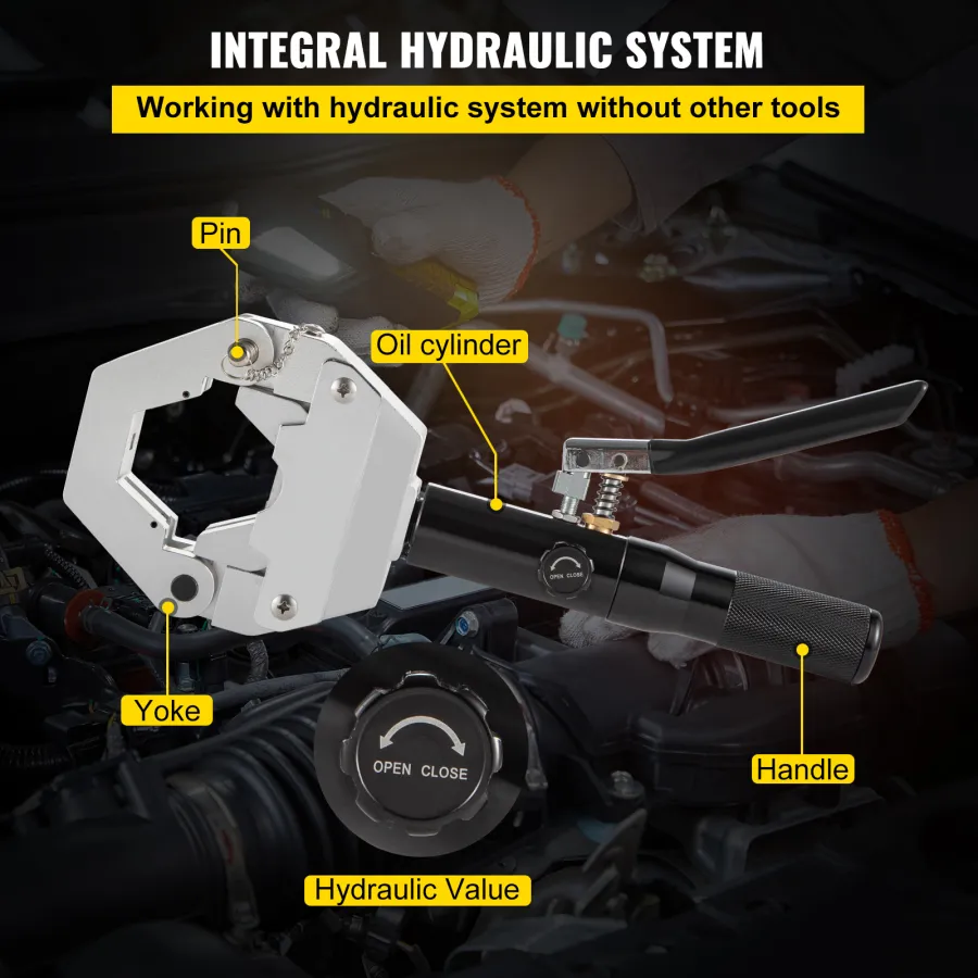 Integrated Hydraulic System: The tool features a built-in hydraulic press, designed for ease of use with a pressure relief valve and a leak-proof oil cylinder. This integrated system ensures smooth, efficient operation with less effort.