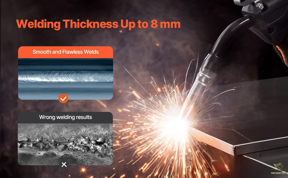 High Performance: Delivering a powerful 130A output current, this welding machine supports welding thicknesses of up to 8mm. It is compatible with various materials, including mild steel, stainless steel, cast iron, sheet metal, square pipes, and metal cage. It is the professional choice for your welding tasks, achieving smooth and flawless welds.