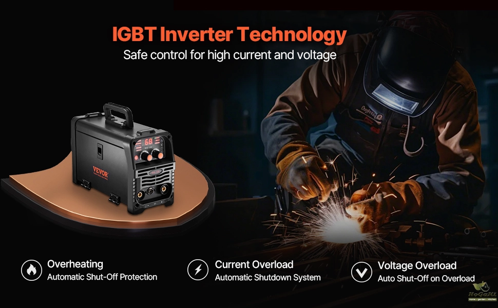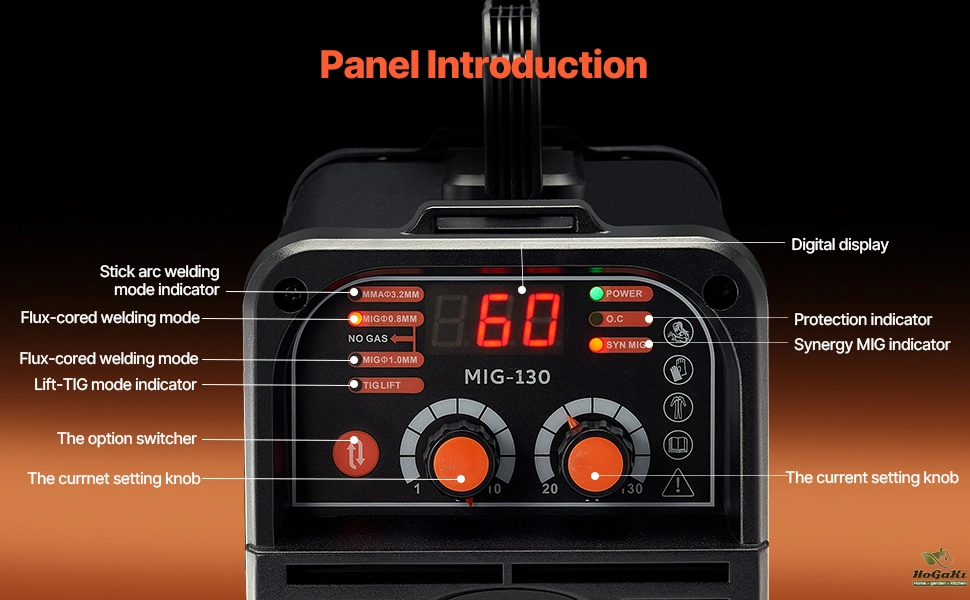 Digital Display: The mig welding machine features a large digital display screen with a clear and intuitive interface. It is equipped with overheat protection as well as current overload protection, ensuring safe operation and long lifespan. Complete with the necessary accessories, it is your reliable partner for various welding tasks!