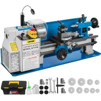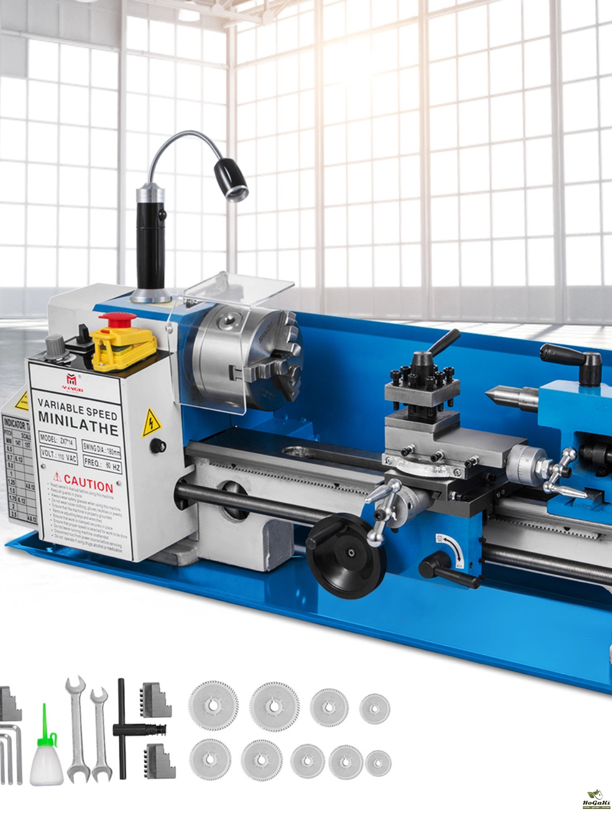 【Upgrade Design】: This small metal lathe uses metal gear instead of a nylon one. Aluminum handwheel can increase service life. Automatic power-off protection switch to make it safer. An extra LED lamp can help you finish processing in places with insufficient light.